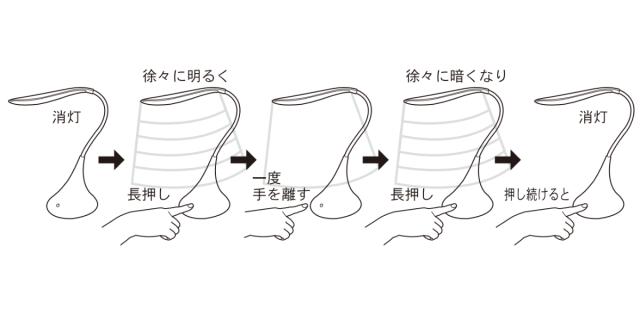 ※調光タッチセンサーで消灯した場合、もう一度調光タッチセンサーを押すと、消灯したときの明るさから徐々に明るくなります。