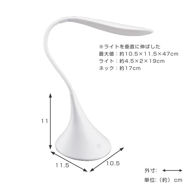 テーブルライト LED 無段階調光 USB対応 ( デスクライト コードレス スタンドライト USB給電式 タッチセンサー 角度調整 電池式 単三電池 明るい シンプル ホワイト 多段式調光 )
