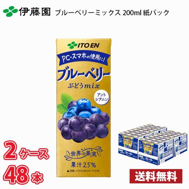 伊藤園 ブルーベリーミックス 200ml 紙パック 48本 (24本×2ケース) 送料無料!!(北海道別途700円、沖縄県配送不可) / ブルーベリーミックス ぶどう