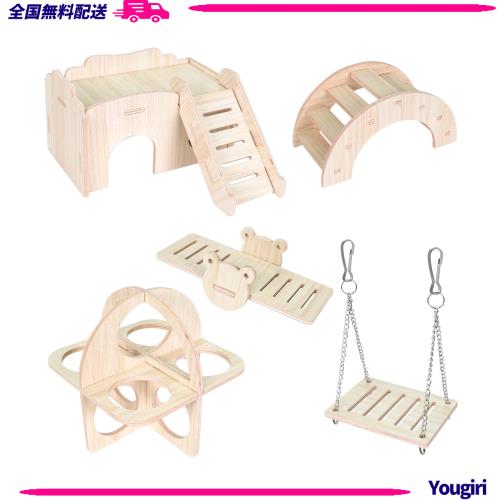 5点ハムスター ハウス おもちゃ ハムスターハウス 木製 小動物用 階建て 木製ペットの住宅 ハムスターの家 おもちゃ 木製 小動物 小屋 遊