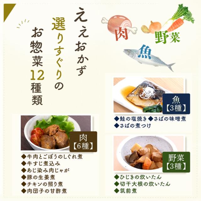 保存料 無添加 ええもん広場 ええおかず 肉 魚 野菜 惣菜 12食 セット 素材の味を生かした 美味しい お惣菜