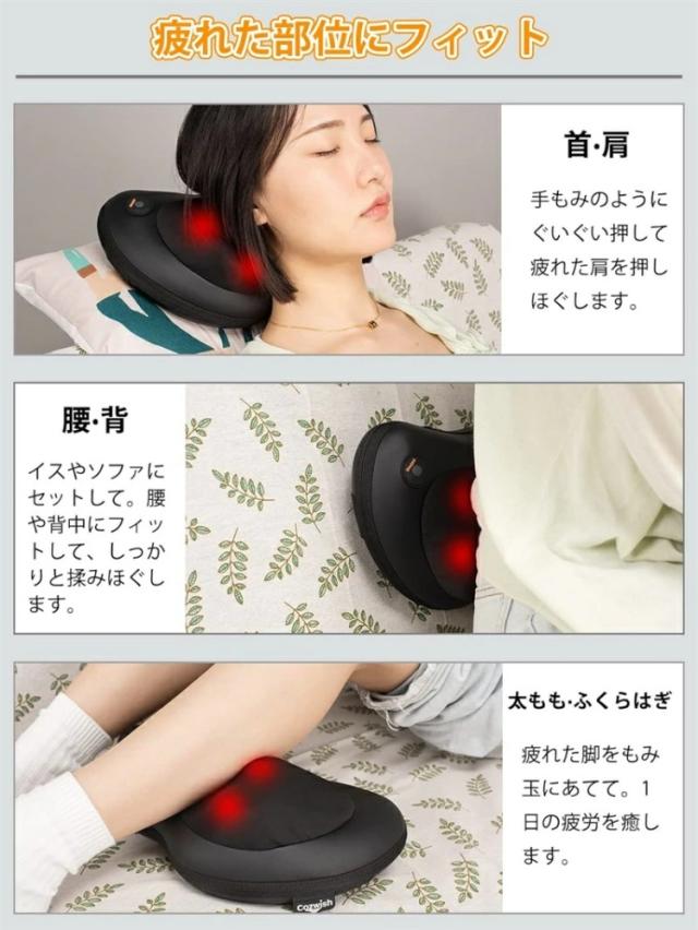 マッサージクッション マッサージ器 マッサージ機 ネックマッサージャー マッサージ枕 マッサージピロー マッサージ器具 肩こり 肩もみ 指圧 ストレス解消 敬老の日 プレゼント父の日