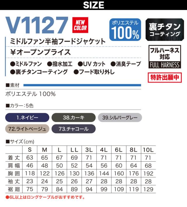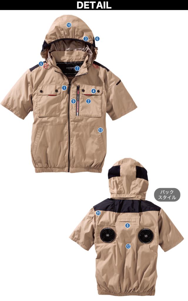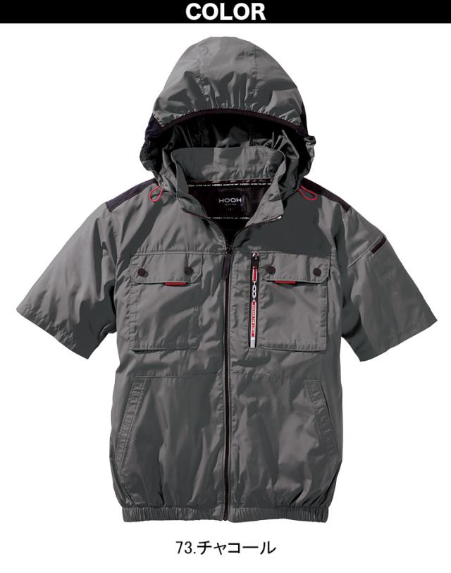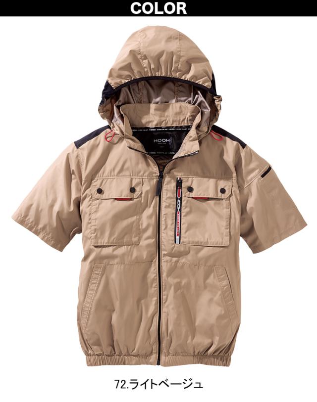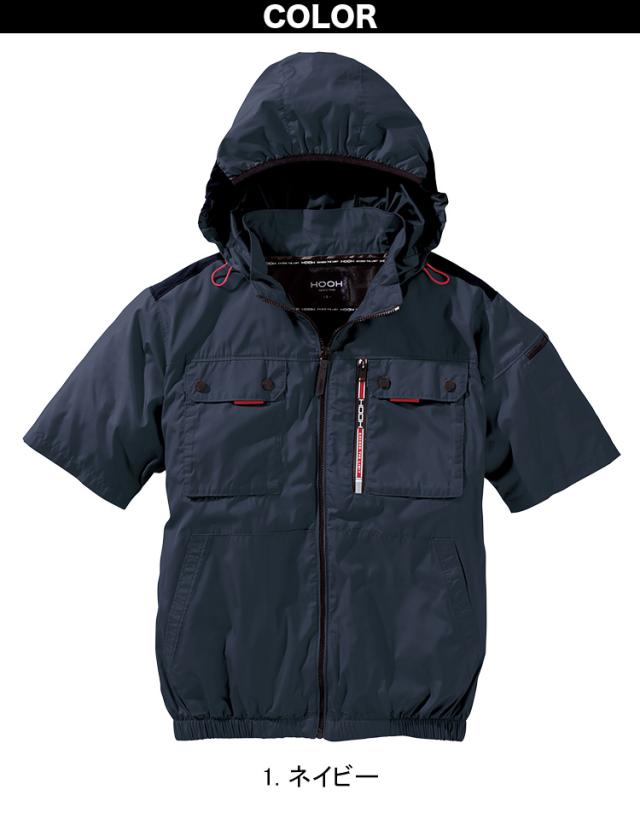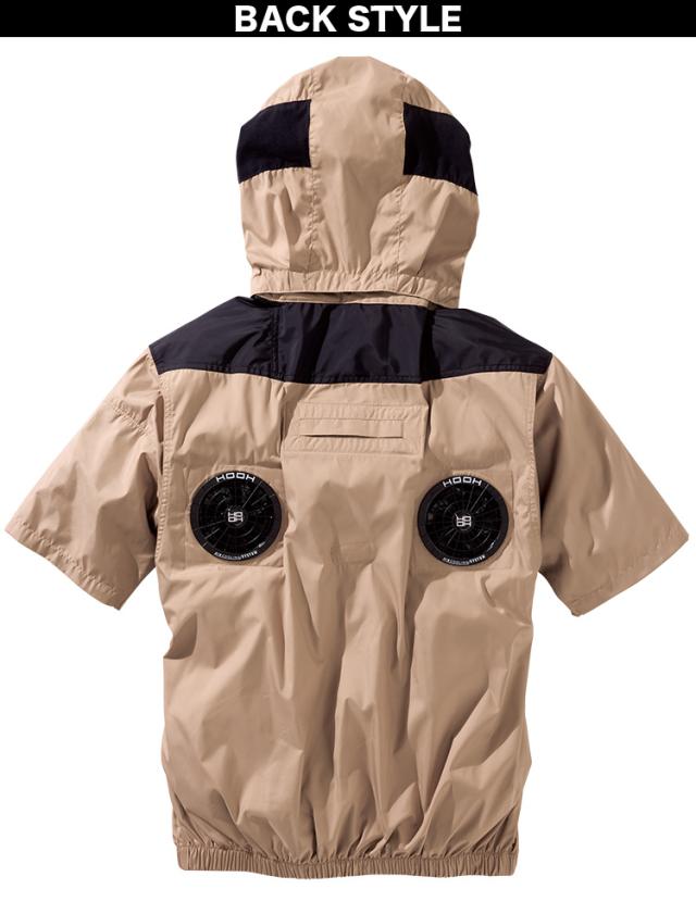 村上被服 快適ウェア 空調作業服 ミドルファン半袖フードジャケット V1127 6L 8L 裏チタン フルハーネス対応 ポリエステル100 ハイバック HOOH 春夏服のみ 電動ファン用ウェア 作業服