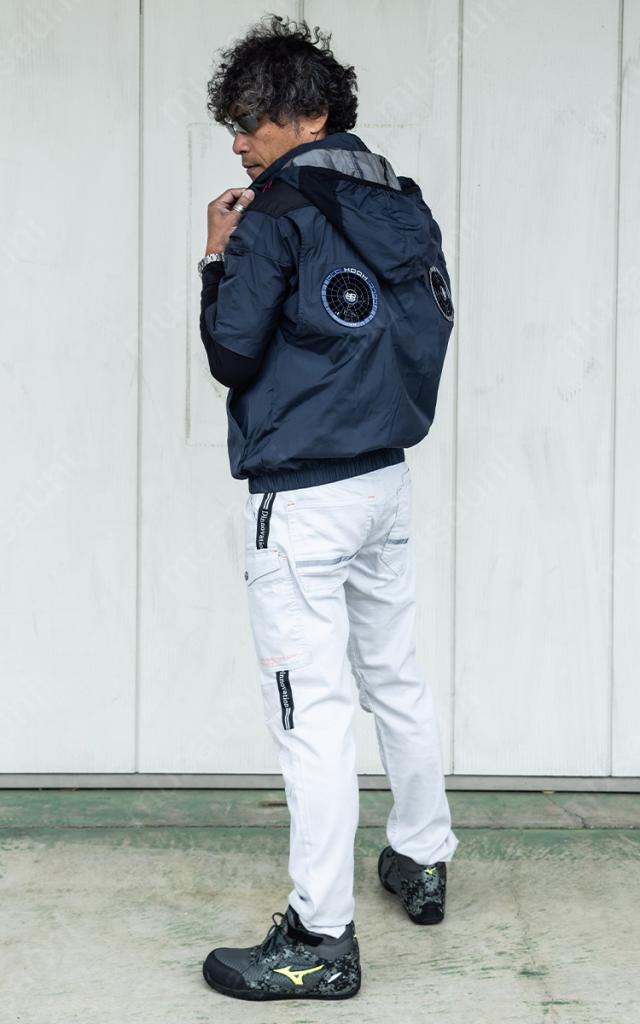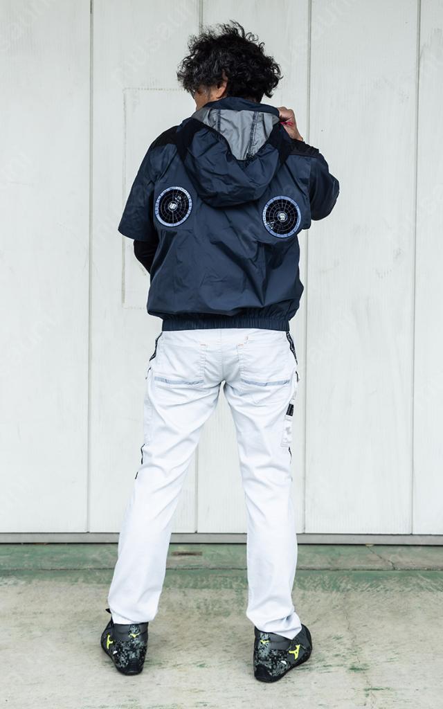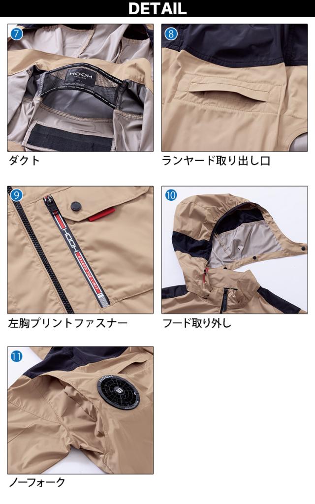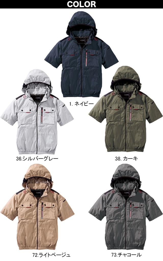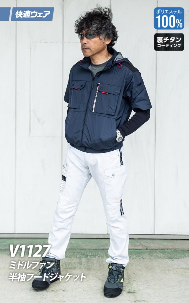 村上被服 快適ウェア 空調作業服 ミドルファン半袖フードジャケット V1127 6L 8L 裏チタン フルハーネス対応 ポリエステル100 ハイバック HOOH 春夏服のみ 電動ファン用ウェア 作業服