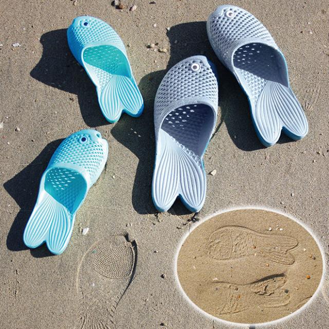 歩くたびに目がキョロキョロと動き、砂浜で歩けば足跡も金魚の形で楽しいです。