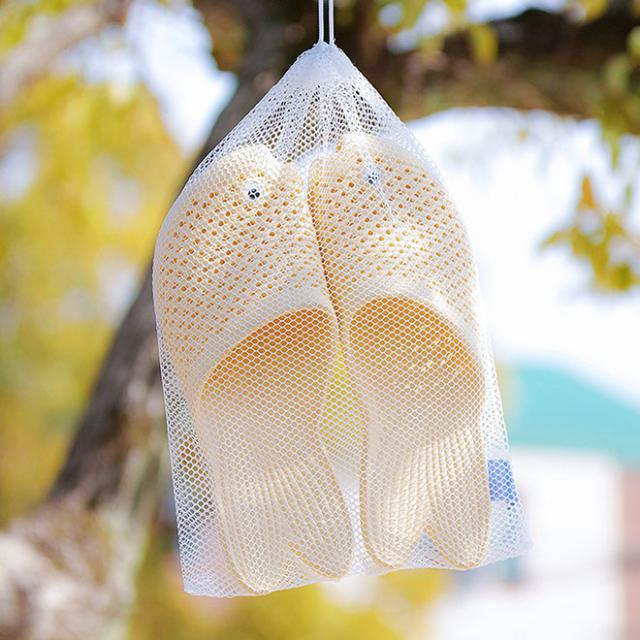持ち運びに便利なメッシュ巾着入りです。