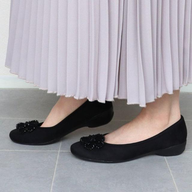 エイチエス(HS)/日本製 フラワーモチーフスエードパンプス