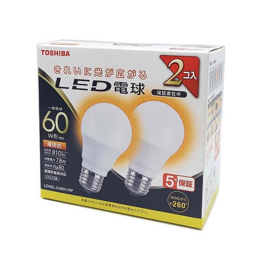 東芝 LED電球 E26 60W 電球色全方向 LDA8L-G/60V1RP(2個入)[蛍光灯・電球]