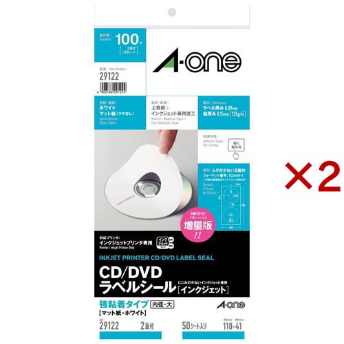 エーワン ラベルシール CD DVDラベル 2面 118×118mm 29122(50シート入×2セット)[事務用品]