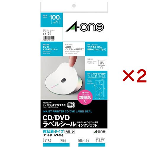 エーワン ラベルシール CD DVDラベル 2面 118×118mm 29164(50シート入×2セット)[事務用品]
