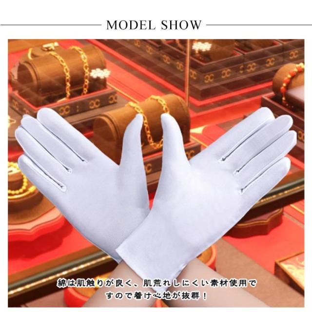 | 手が汚れる作業や運転にも最適♪程良い薄さの手袋が役に立ちます! 綿は肌触りが良く、肌荒れしにくい素材使用ですので着け心地が抜群! 伸縮性のある素材を使用しているため、手を制限することなく自由に動かすことができます。 宝石品などの取り扱いに精密機器の組立て時に! フォーマルシーンだけでなく、コスプレ用としても着用可能です。 包装作業、車運転用、園芸用、日焼け防止、防寒用等に! | |