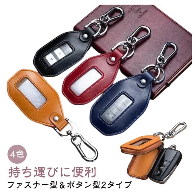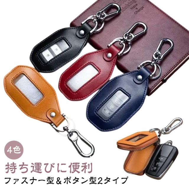 【2個セット】 スマートキーケース スマートキーカバー スマートキー対応 キーケース カラビナ付き 多機能 窓付き 4色 4カラー レディース 人気 車 メンズ キーホルダー 車キーカバー キーカバー ファスナー型ボタン型 2タイプ