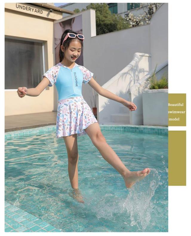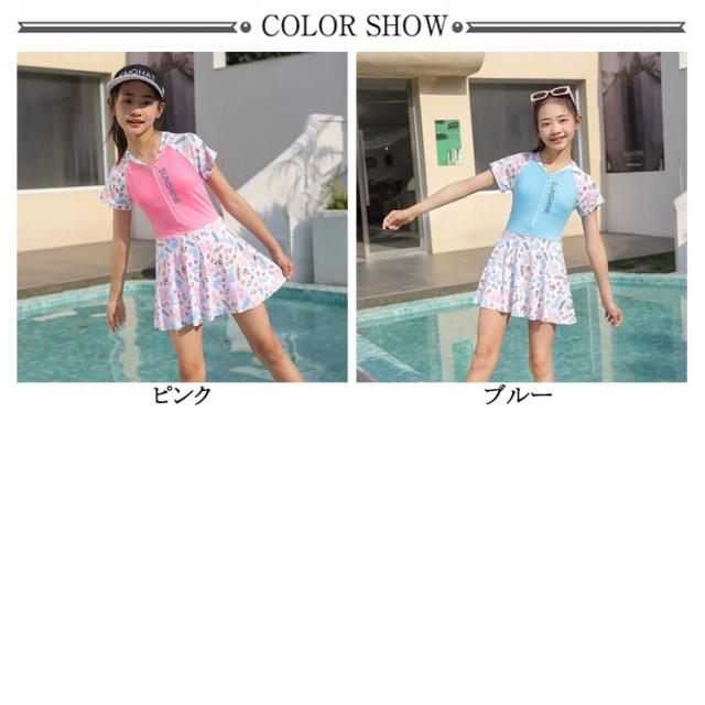 キッズ 水着 女の子 ワンピース 120 130 140 150 キッズ 水着 女の子 半袖 北欧柄 全2色 ピンク ブルー ラッシュガード ワンピース 一体型 ボクサータイプ 子供 水泳 スイムウェア スイミング 水遊び 日焼け対策 水遊び 旅行 プール 送料無料