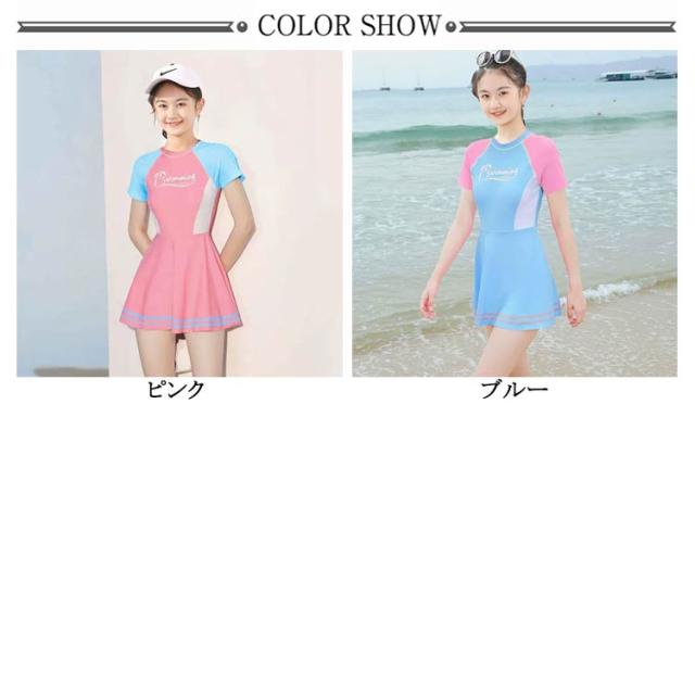 キッズ 水着 女の子 ワンピース 120 130 140 150 キッズ 水着 女の子 半袖 北欧柄 全2色 ピンク ブルー ラッシュガード ワンピース 一体型/ボクサータイプ 子供 水泳 スイムウェア スイミング 水遊び 日焼け対策 水遊び 旅行 プール 送料無料