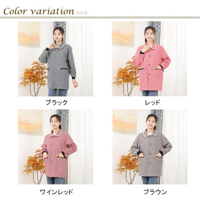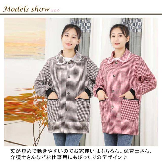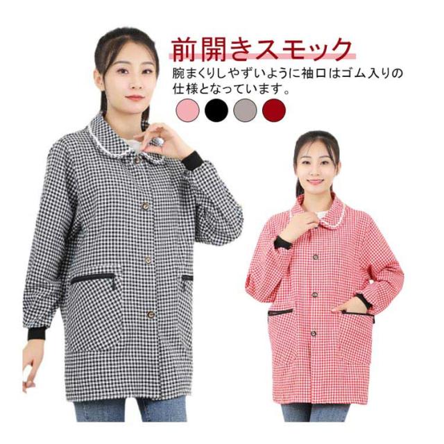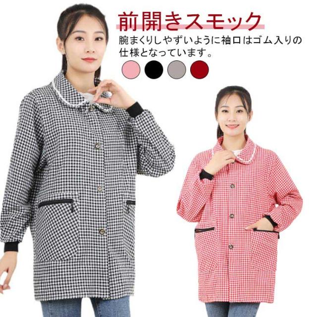 割烹着 保育士 かっぽう着 前開き エプロン スモック レディース かわいい おしゃれ チェック ノーアイロン 速乾 保育士 介護士 看護師 家事 大人用 母の日 プレゼント 給食 学校