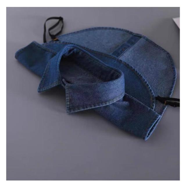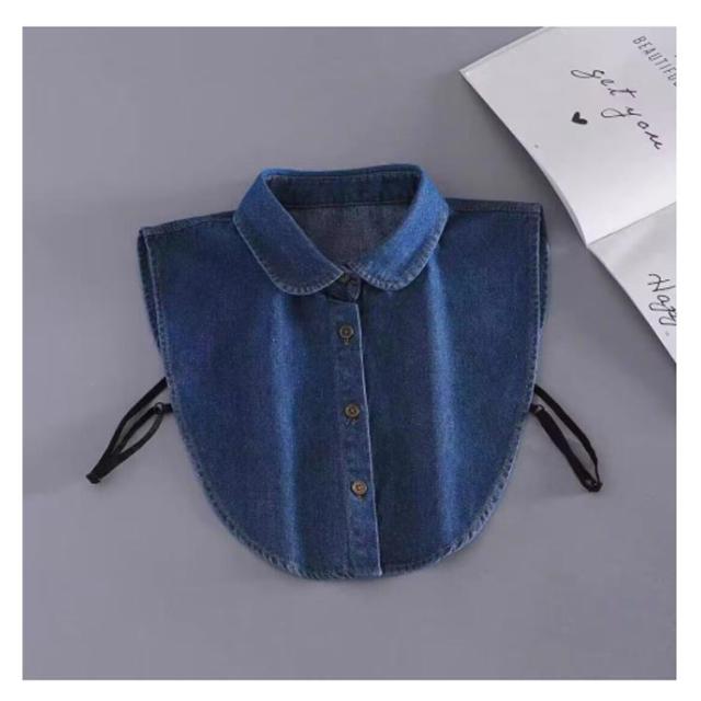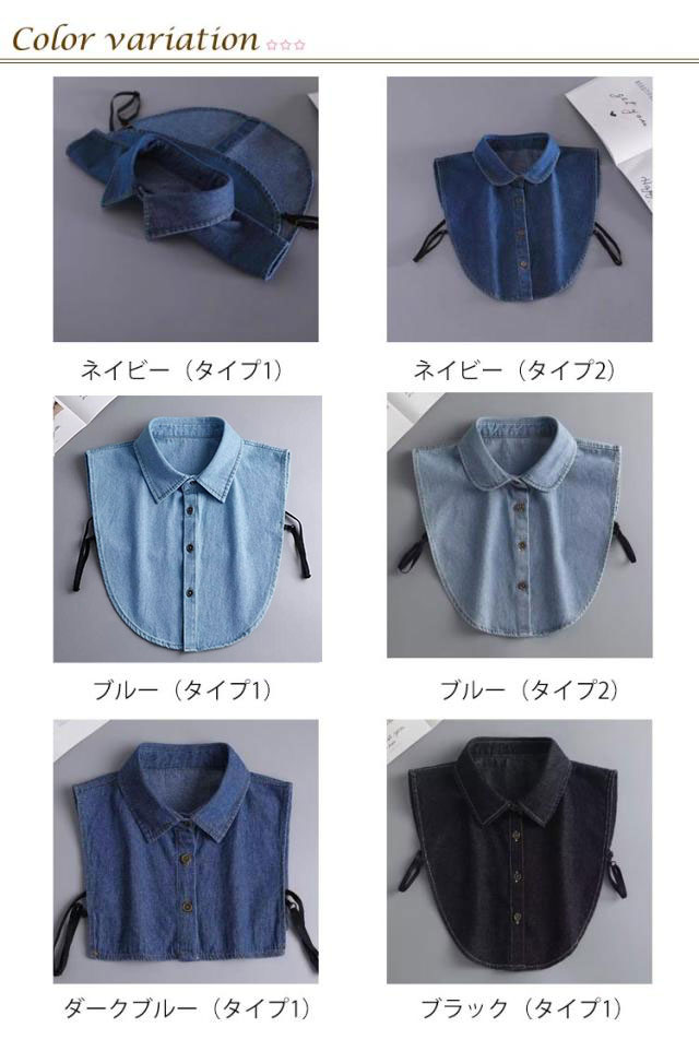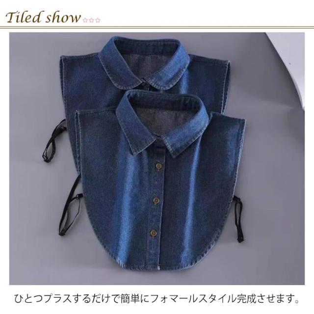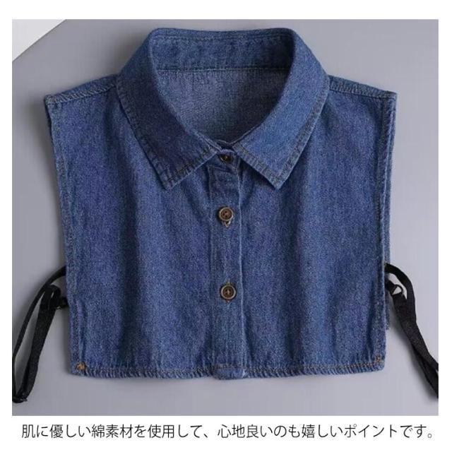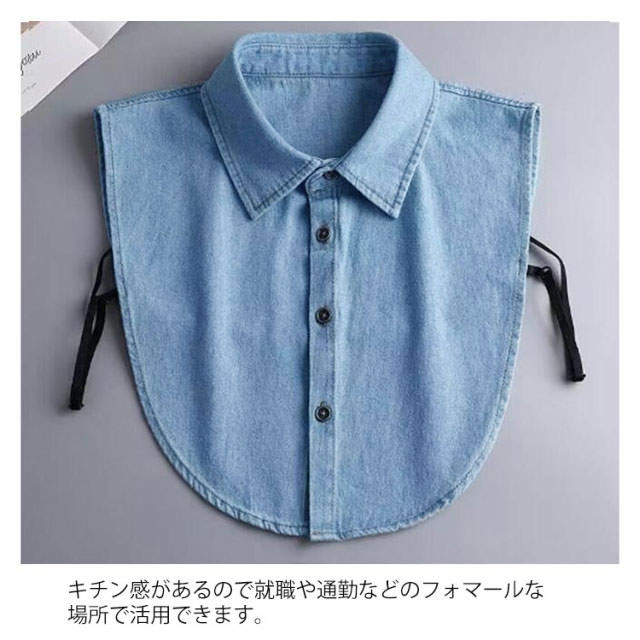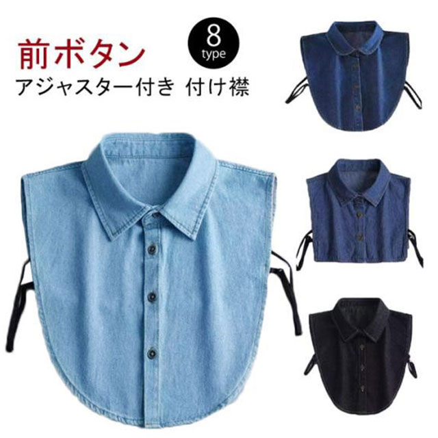 付け襟 レディース メンズ つけ襟 アジャスター付き デニム付け襟 フェイクカラー デニム シャツつけ襟 シャツ衿 無地 調節 簡単 重ね着 前ボタン シンプル オフィス 通勤 ノースリーブ レイヤード ネックカバー ネックウォーマー シャツ襟 ブラウス付け襟