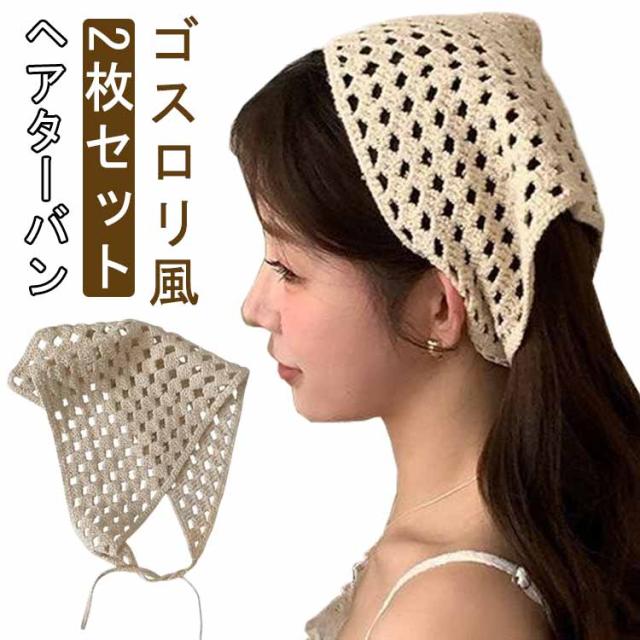 2枚セット 三角巾 レディース カチューシャ ヘアアクセサリー 髪飾り 頭巾 スカーフ バンダナ ヘアアレンジ 韓国 ボヘミアン ヘアドレス 透け感 薄手 おしゃれ 可愛い 大人っぽい 春夏 普段使い 森ガール ゴスロリ風 ガールズ 送料無料