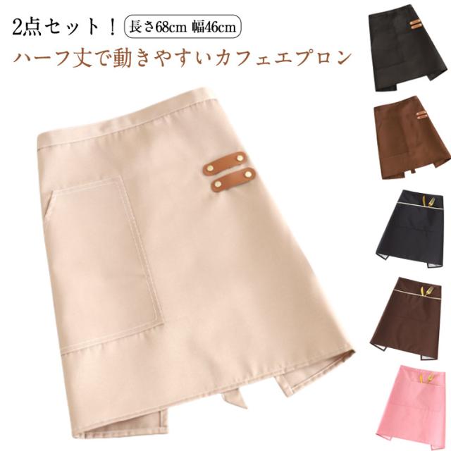 2点セット エプロン 前掛け 腰巻き サロン レディース 無地 ミドル丈 短い 動きやすい 速乾 軽い シンプル おしゃれ カフェ 飲食 レストラン 腰下 腰エプロン 制服 ユニフォーム DIY ワーク おしゃれ 洗える 丈夫 人気 エプロン フリル 花柄 送料無料