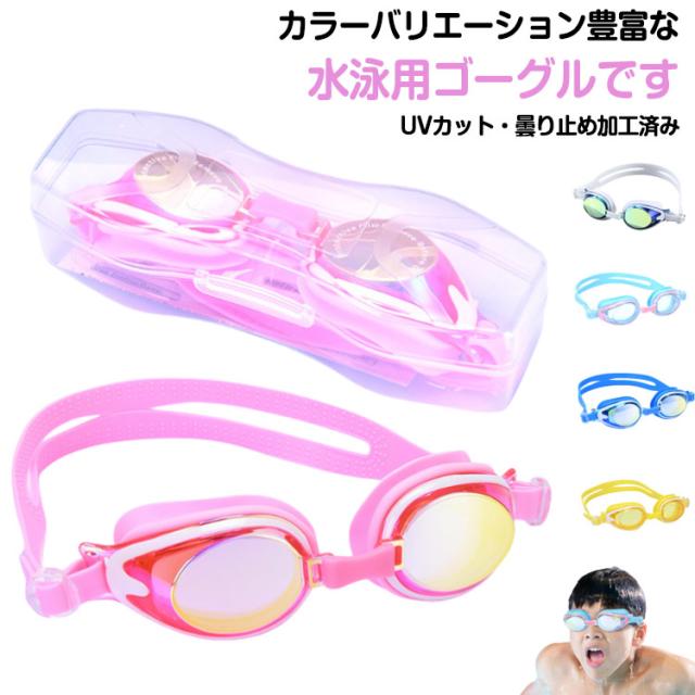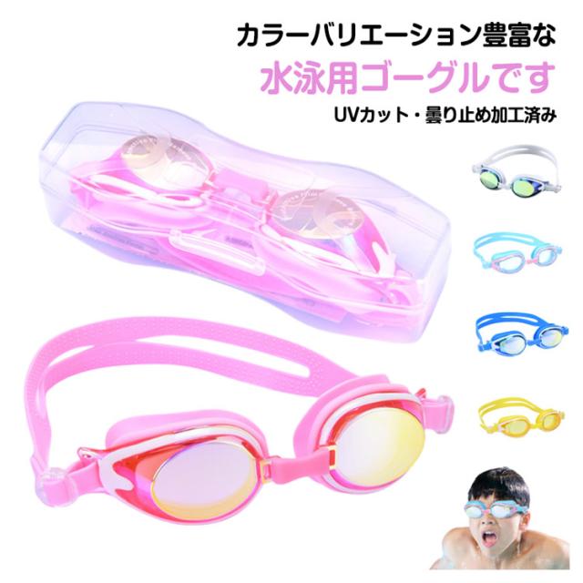スイム ゴーグル 子供用 収納ケース付き 水泳 子供 子ども スイミング プール 海 くもり止め UVカット 軽量 耐久性 ゴーグル 水中メガネ 子供 キッズ ツートンカラー カラフル 可愛い おしゃれ 男女兼用