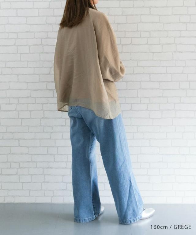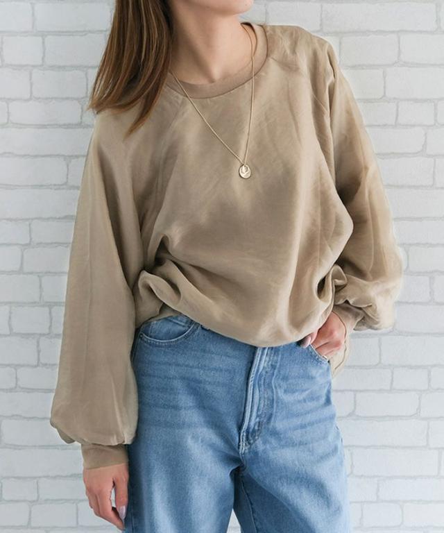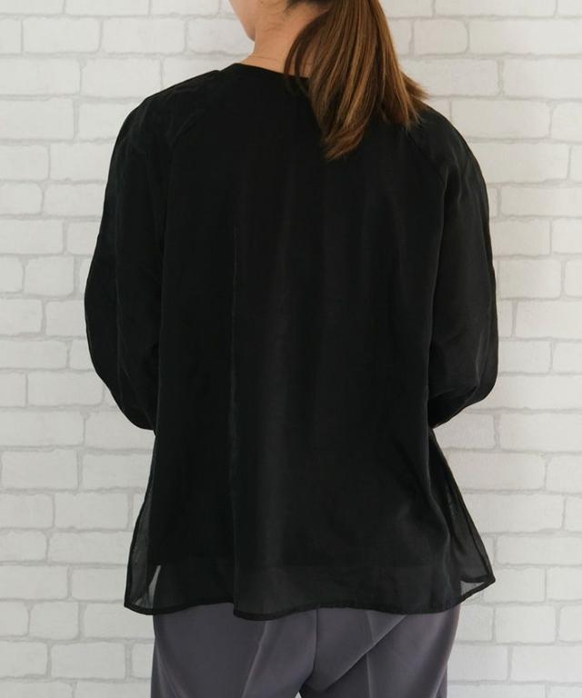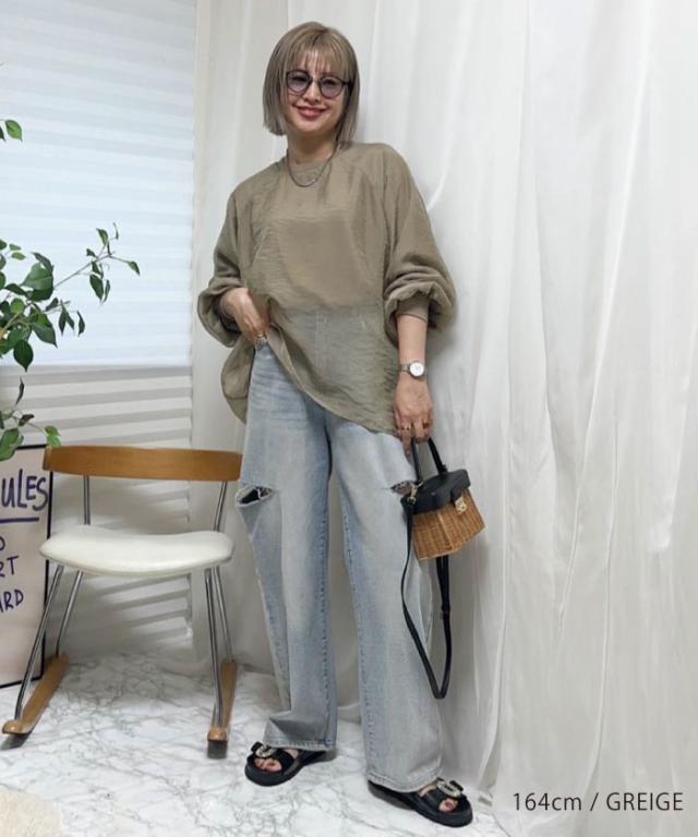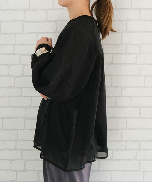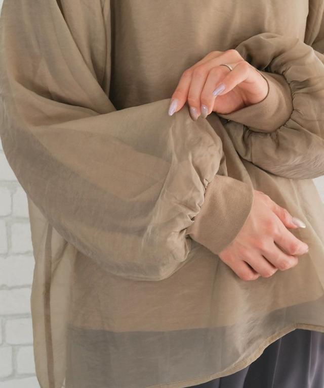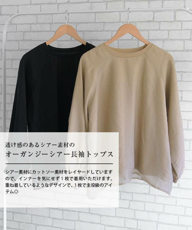 透け感のあるシアー素材のオーガンジーシアー長袖トップス