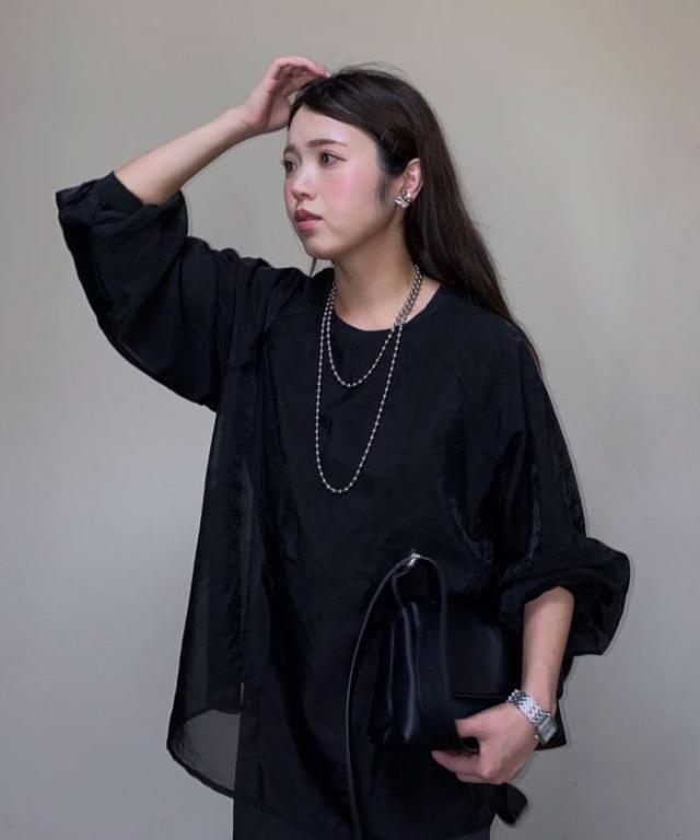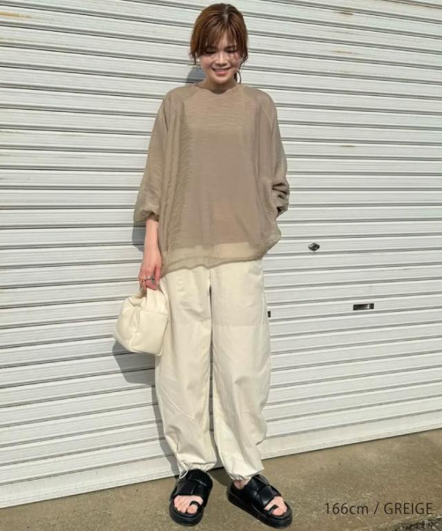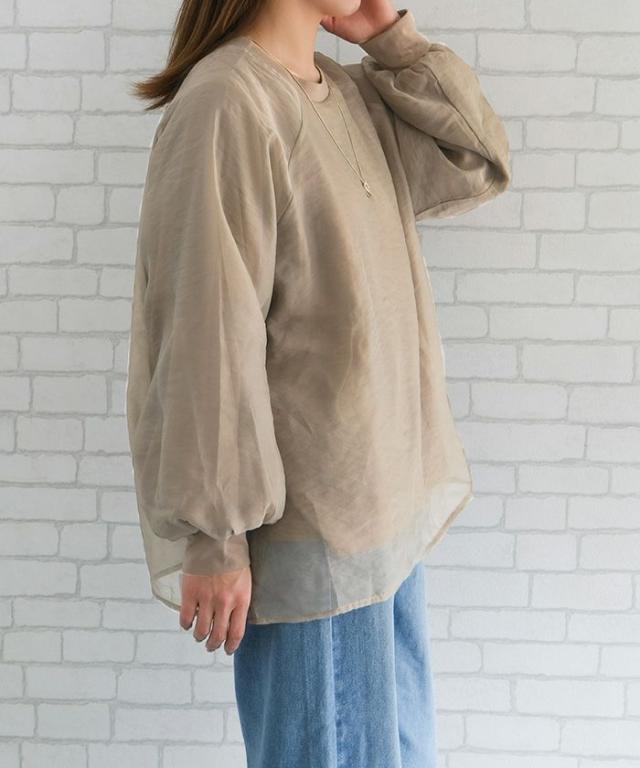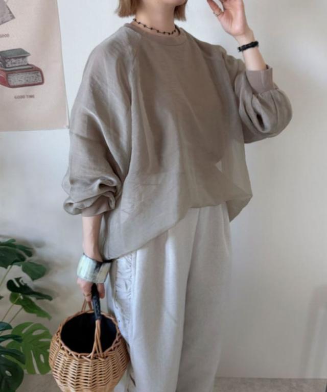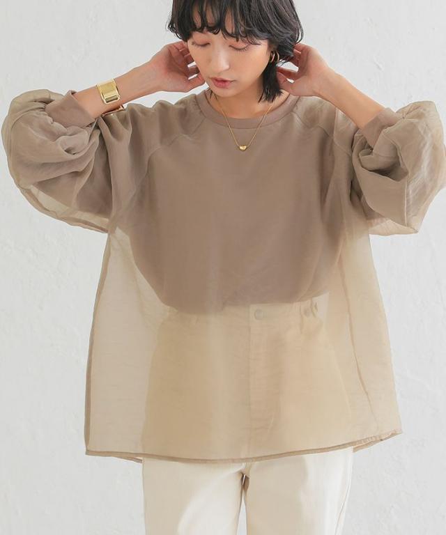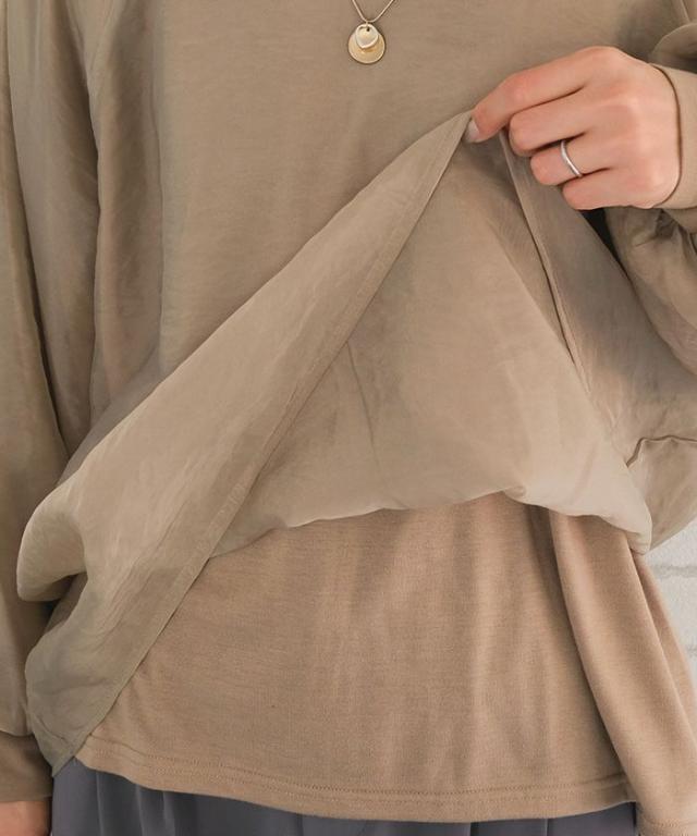 シアー素材にカットソー素材をレイヤードしていますので、インナーを気にせず1枚で着用いただけます。