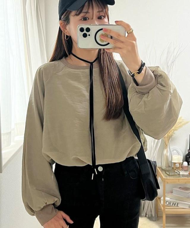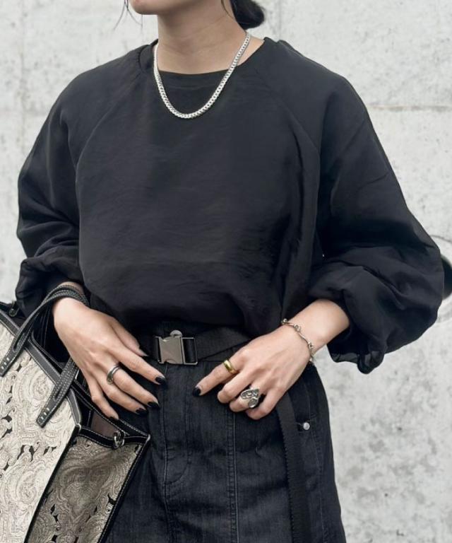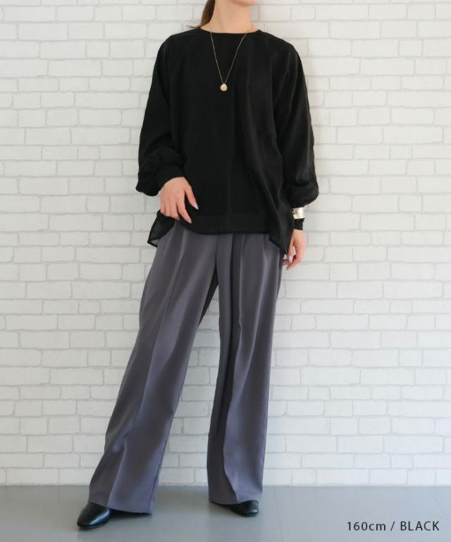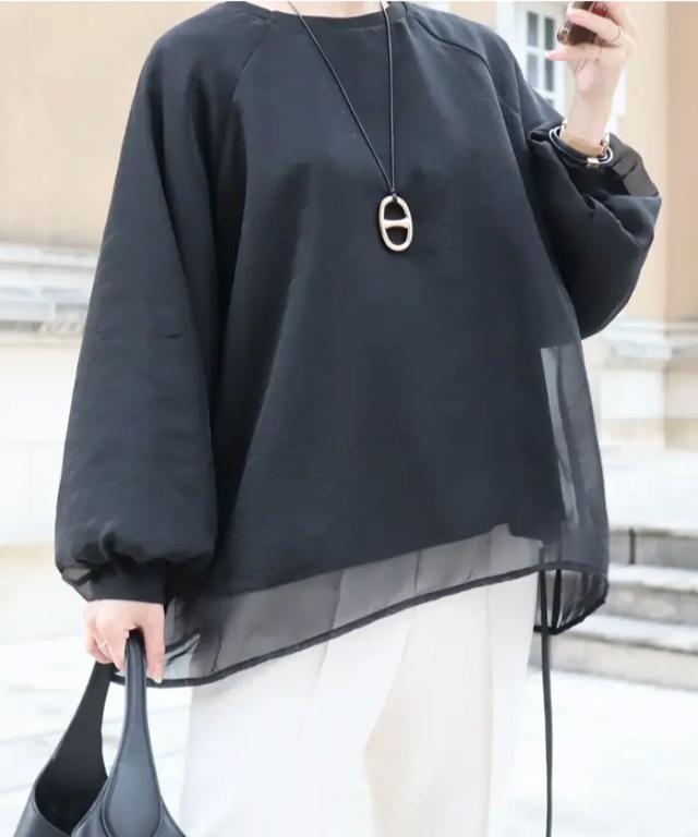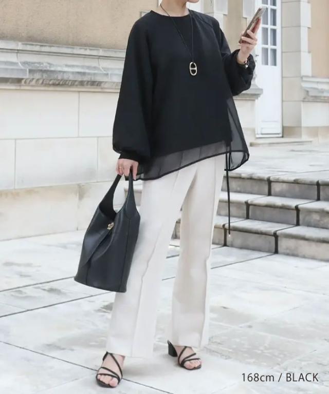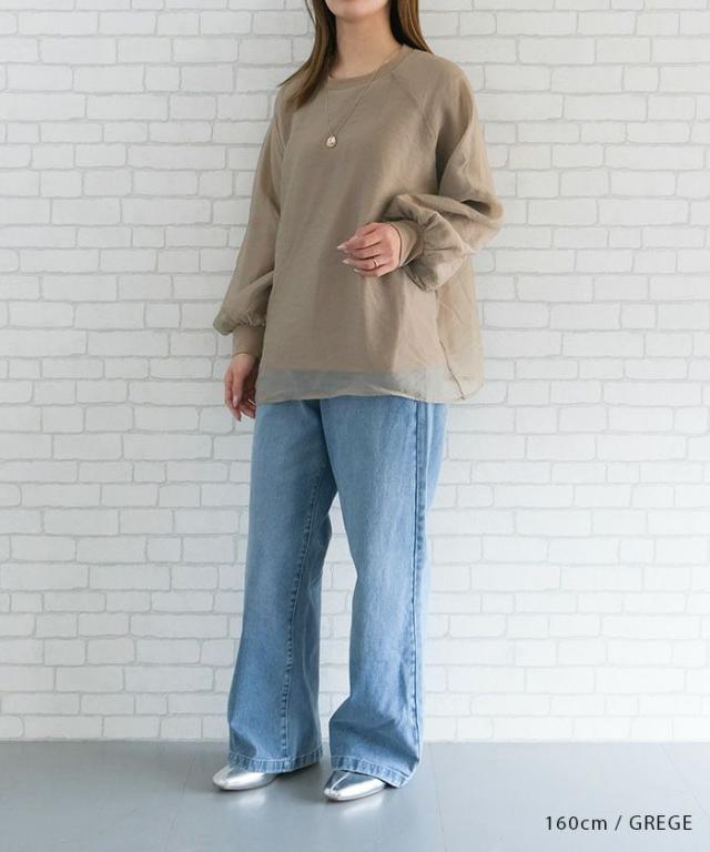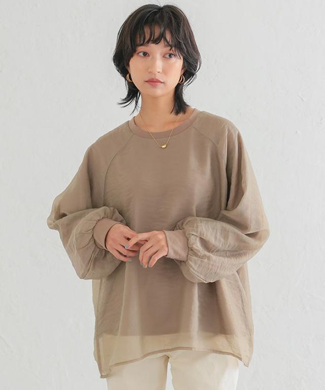 シアー素材にカットソー素材をレイヤードしていますので、インナーを気にせず1枚で着用いただけます。