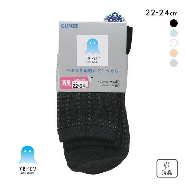 グンゼ アセドロン メガメッシュ クルー丈 ソックス レディース 靴下 GUNZE 吸放湿 22-24cm