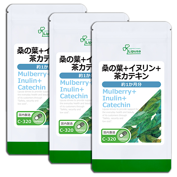 桑の葉+イヌリン+茶カテキン 約1か月分×3袋 C-320-3 (60カプセル×3袋) 送料無料 ダイエット 健康維持 サプリ リプサ Lipusa 公式 agesugi_sbe
