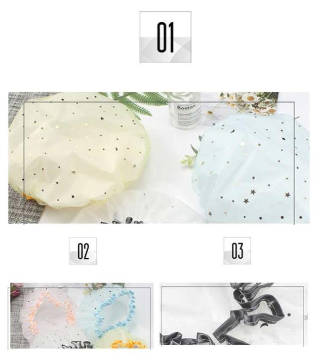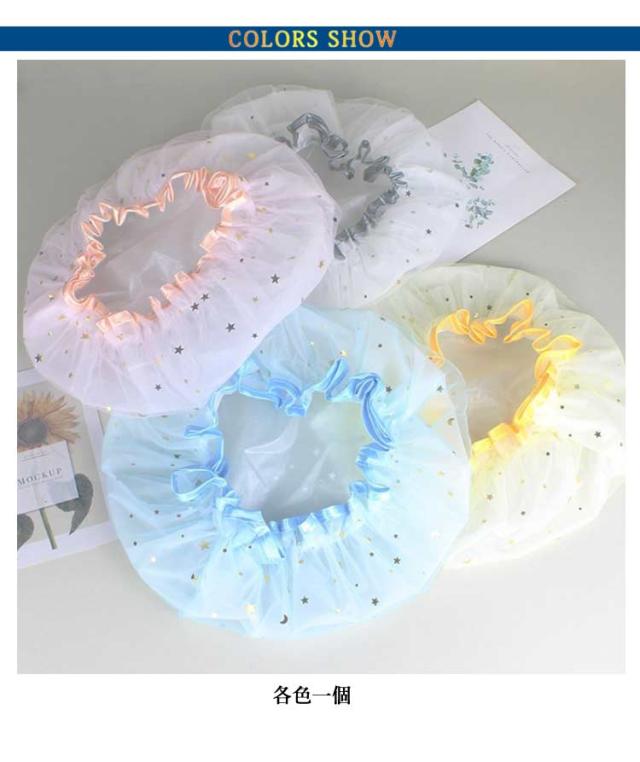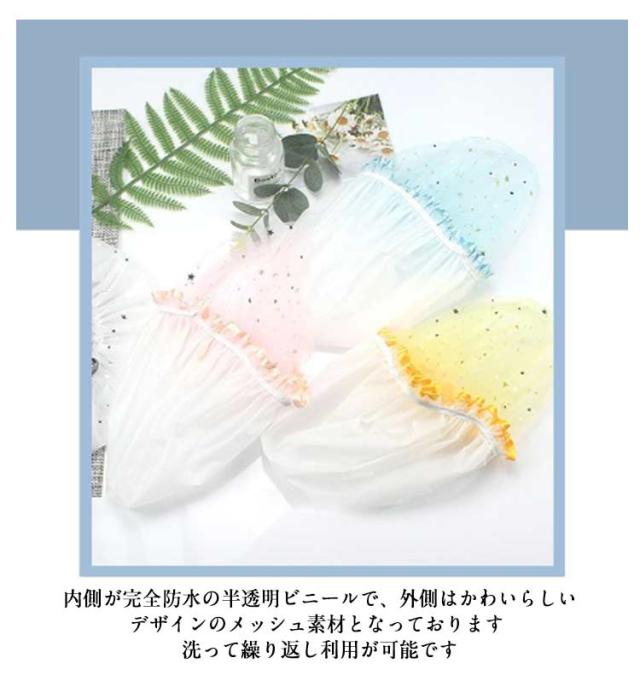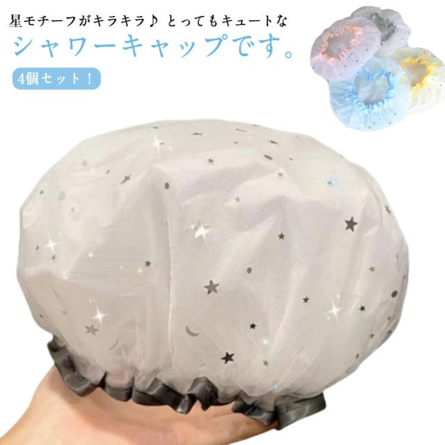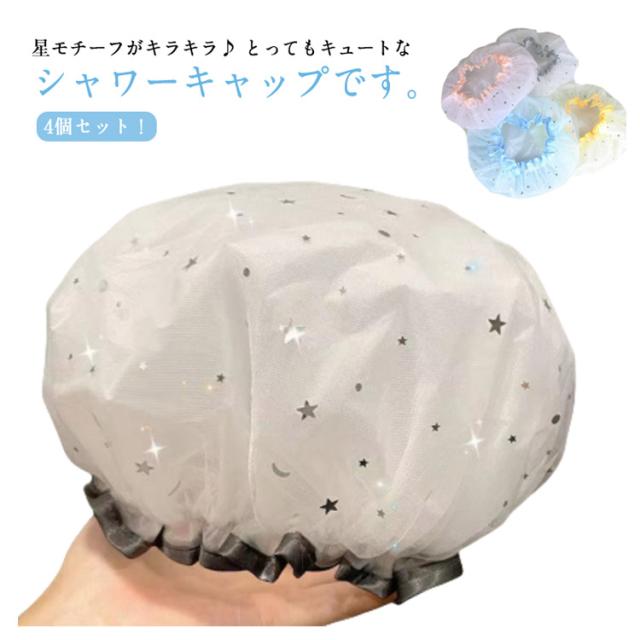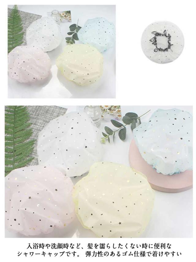 | 4個セット!星モチーフがキラキラ♪ とってもキュートなシャワーキャップです。 普段使いはもちろん温泉旅行の際にも 優れた防水性と伸縮性。防水性が高く、伸縮性と弾力性に優れたPVC素材を使用し安心してお使いいただけます 内側が完全防水の半透明ビニールで、外側はかわいらしいデザインのメッシュ素材となっております 洗って繰り返し利用が可能です 入浴時や洗顔時など、髪を濡らしたくない時に便利なシャワーキャップです。 弾力性のあるゴム仕様で着けやすい 洗顔・バスルームでの入浴はもちろん、美容室などでも◎ | |