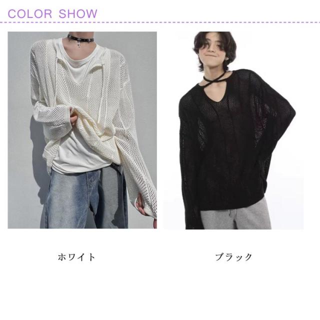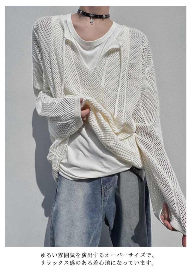 ゆったり レディース きれいめ 透かし編み レース編み クルーネックニット ニット ビッグサイズ 長袖Tシャツ 重ね着 オーバーサイズ レイヤード メッシュ メンズ カジュアル シンプル 個性 ヒップホップ 韓国ファッション ストリート 送料無料