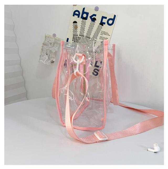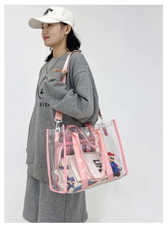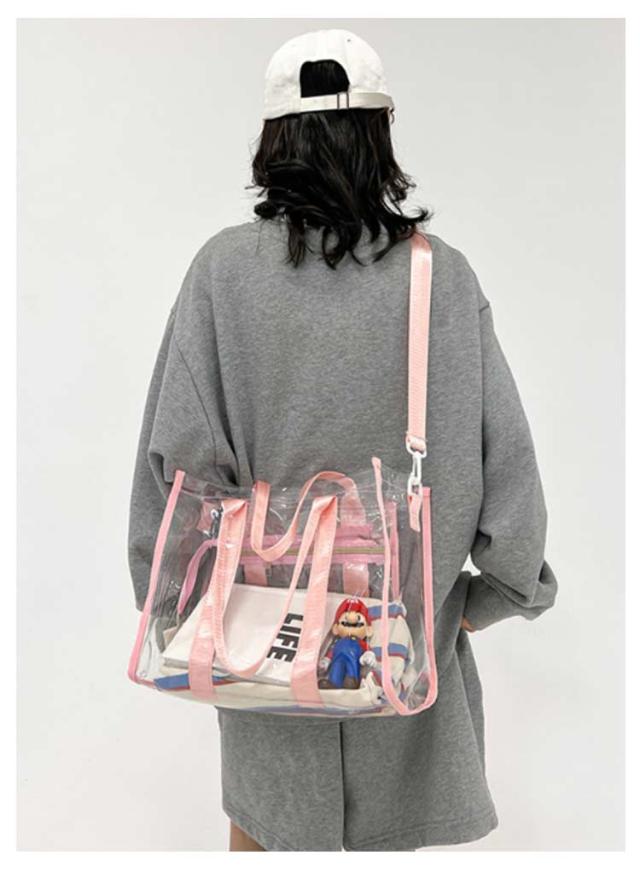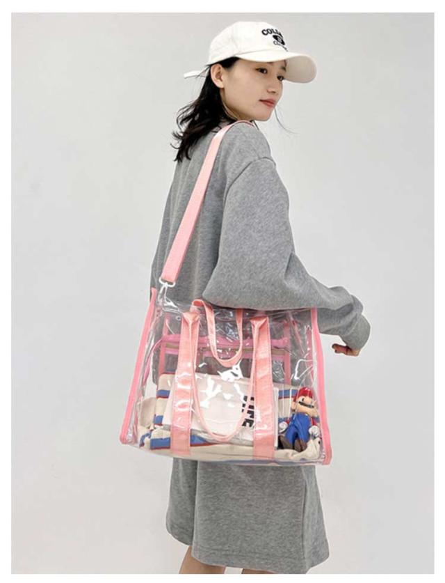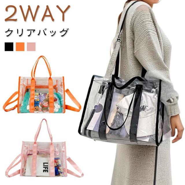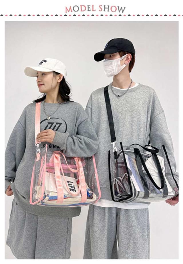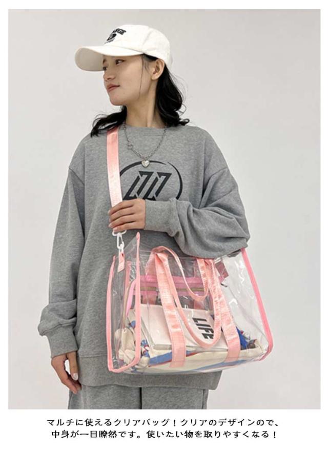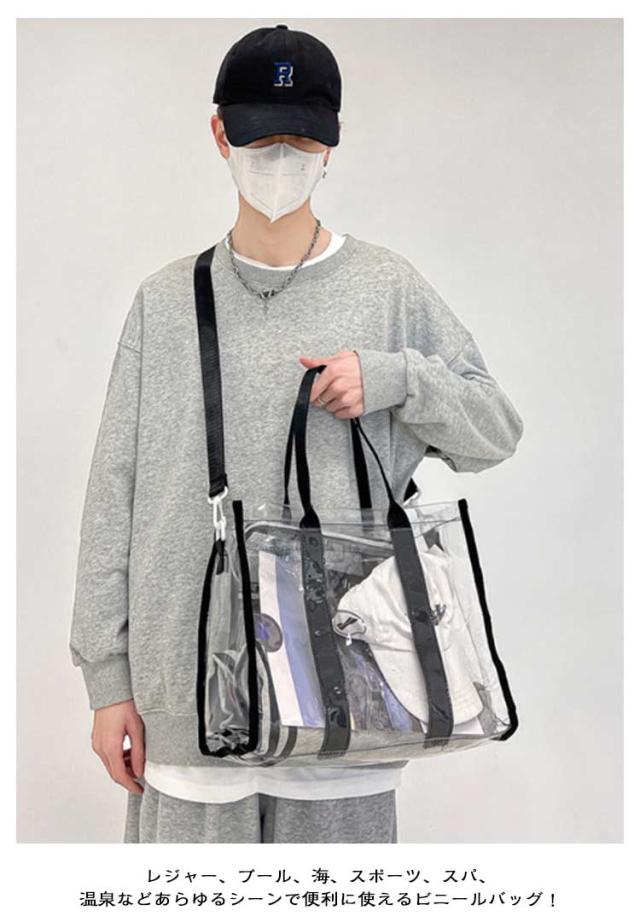 クリアトラベルバッグ おしゃれ 透明 トートバッグ レディース クリアバッグ 大きめ ショルダーバッグ 2WAY ビニールバッグ クリアバッグ プールバッグ PC ファスナー付き トート ショルダー ビーチバッグ 温泉バッグ
