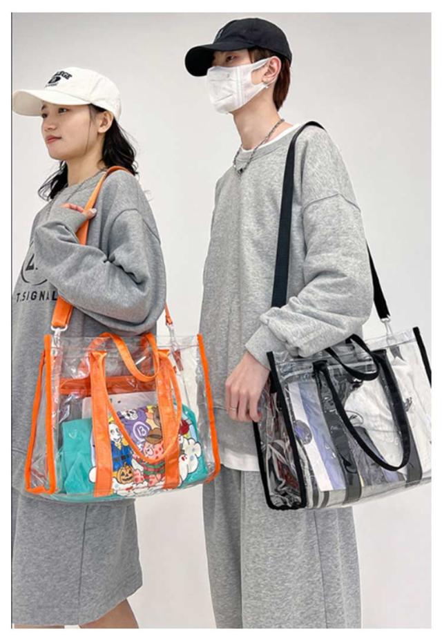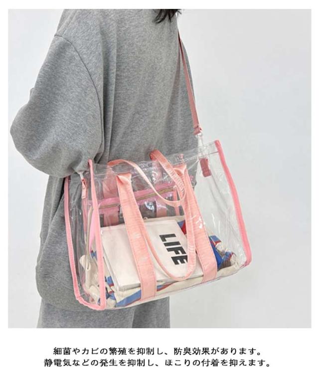 | 【2WAYクリアバッグ】 レジャー、プール、海、スポーツ、スパ、温泉などあらゆるシーンで便利に使えるビニールバッグ! 濡れた衣類やタオル、靴、レジャー用品などを収納しても防水生地なので安心して持ち運びOK! 細菌やカビの繁殖を抑制し、防臭効果があります。静電気などの発生を抑制し、ほこりの付着を抑えます。 マルチに使えるクリアバッグ!クリアのデザインので、中身が一目瞭然です。使いたい物を取りやすくなる! クールなカラーは落ち着いて美しく、知的な大人っぽさを保てます。 普段使いファッションやツアーバッグとしてもオススメの可愛いクリアバッグです | |