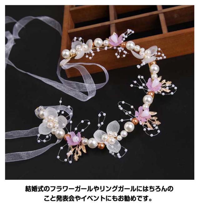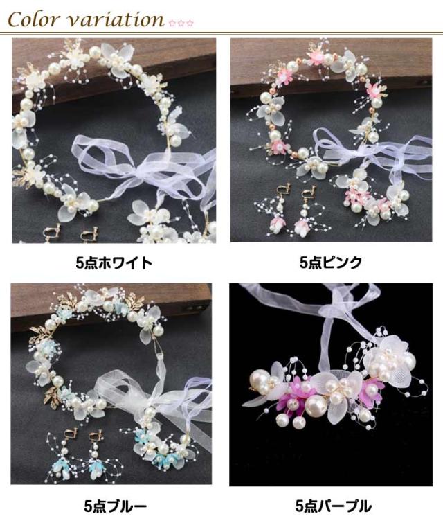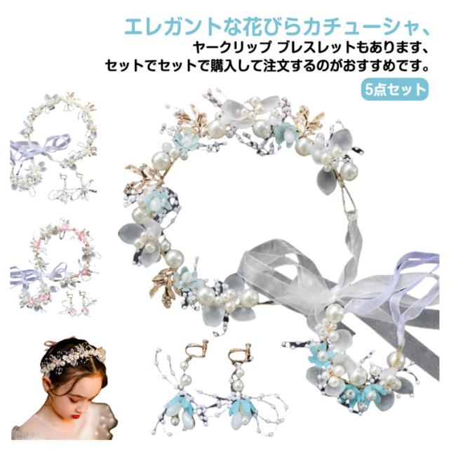 女の子 花 ピアノ発表会 子供 ヘッドドレス ブレスレット カチューシャ ウェディング ヘッドドレス イヤークリップ 5点セット ヘアアクセサリー 花びら パール 七五三 ヘアアクセサリー 子供髪飾り 女の子ドレスヘアアクセ キッズ