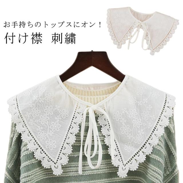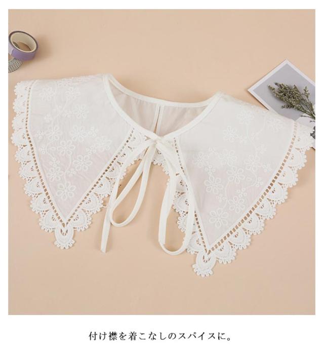 レディース キッズ つけ襟 付け襟 レース つけ襟 かわいい レディース ホワイト インナー レイヤード 重ね着 オールシーズン 刺繍 花柄 つけ襟 透け感
