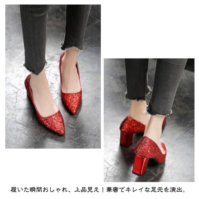 5cm ポインテッドトゥ 幅広タイプ 太め 痛くない ヒール 歩きやすい 大きいサイズ 4E パンプス ハイヒール 結婚式 卒業式 パンプス 7cm チャンキーヒール ドレス パーティ 靴 パーティー 入学式 キラキラパンプス おしゃれ