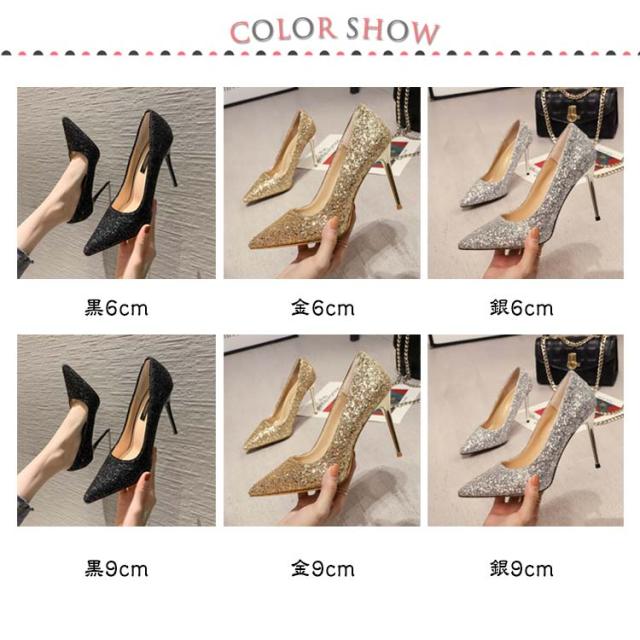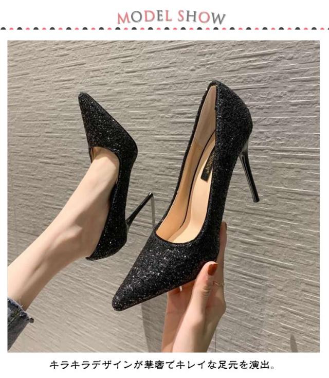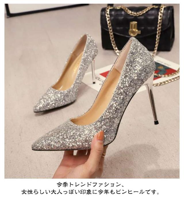9cm 痛くない レディース パンプス キラキラ ハイヒール 華やか 6cm パーティー ハイヒールパンプス 美脚パンプス ポインテッドトゥ キラキラ フォーマル シルバー 結婚式 披露宴 謝恩会 お呼ばれ 二次会 ブラック ゴールド キラキラ ピンク