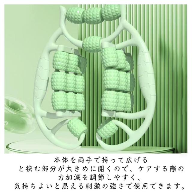 | マッサージローラー 24個ロール付き 簡単お家でリラックスケア ローラーは24個ついているので、太もも、ふくらはぎ、背中、お尻、首、二の腕など、様々な使用箇所にお試しいただけます。 本体を両手で持って広げると挟む部分が大きめに開くので、ケアする際の力加減を調節しやすく、気持ちよいと思える刺激の強さで使用できます。 リラックスタイムにころころすれば、簡単にケアができます。 お手入れ簡単!水拭きはもちろん、水洗いも可能です。 | |