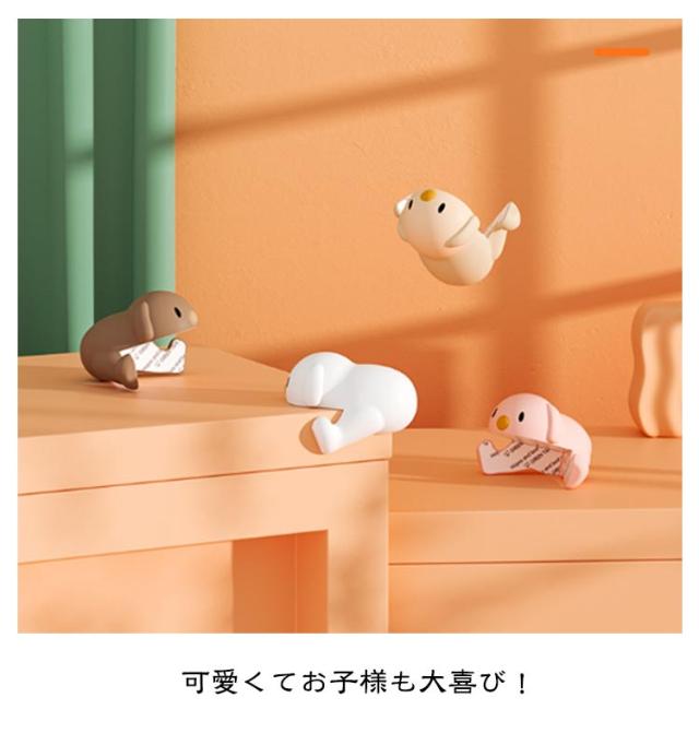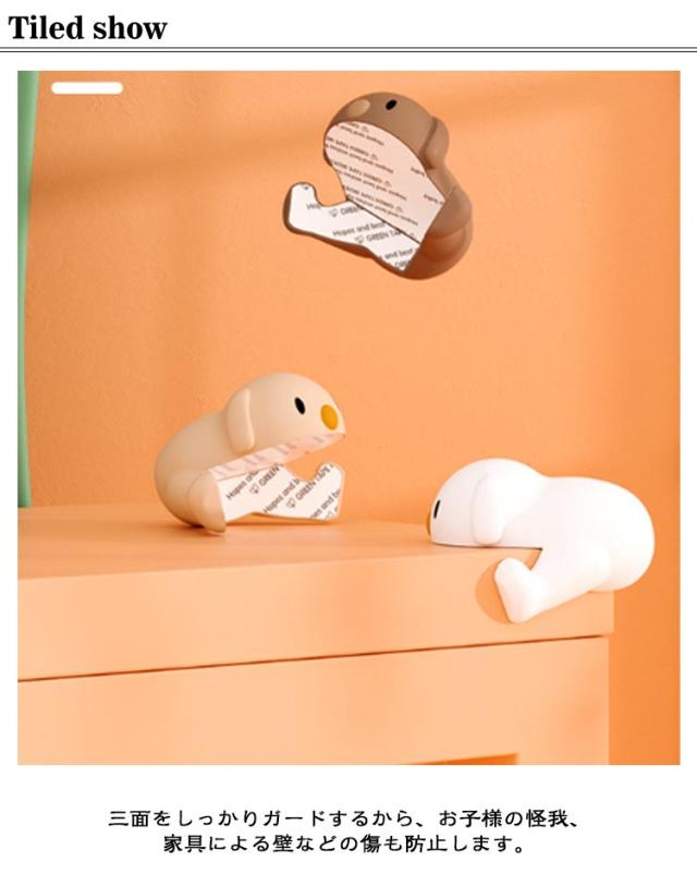 | 子供の怪我防止に! 可愛い犬型のコーナーガード 8個セット 三面をしっかりガードするから、お子様の怪我、家具による壁などの傷も防止します。 もしぶつかってしまっても、柔らかいシリコン素材が衝撃を吸収してくれるから痛くない。 強力な粘着テープでしっかりと固定され、跡を残さずに剥がせます。 可愛くてお子様も大喜び! | |