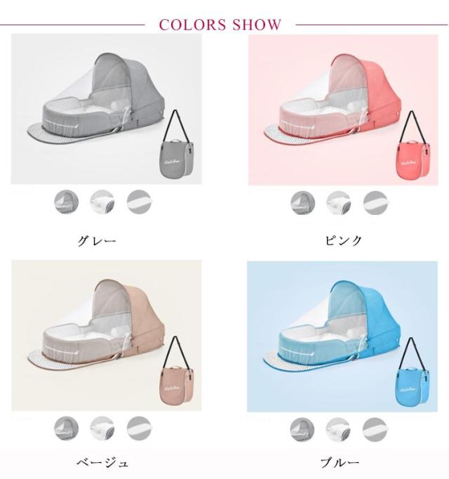 | どこでも使える!折りたたみ式簡易ベビーベッド 蚊帳付きで外出先や屋外でも赤ちゃんを虫からガード。 洗えるキルティングカバーで清潔を保ち、通気性も抜群! 蛍光灯の光や騒音、クーラーや扇風機の風を軽減。 閉めて使えば、虫やホコリの侵入も防ぐので、赤ちゃんも安心です。 バッグタイプで持ち運び簡単!おむつやおもちゃも一緒に収納OK。 軽量設計なので、ご自宅だけでなく帰省や旅行などのお出かけにもおすすめです。 | |