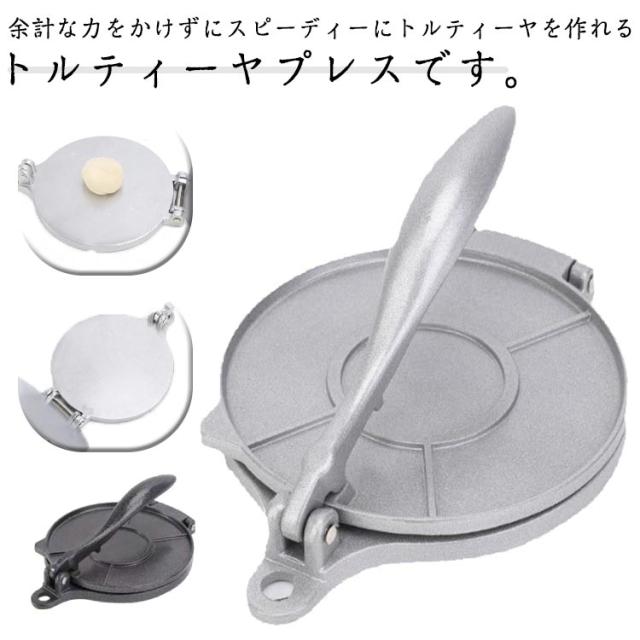 プレス 自家製 トルティーヤプレス トルティーヤメーカー プレス機 20cm 直径16cm トルティーヤパイ 耐熱皿 トルティーヤプレス 軽量 タコス メキシコ料理 キッチン用品 アルミ ピザや餃子などの生地を作る 調理器具