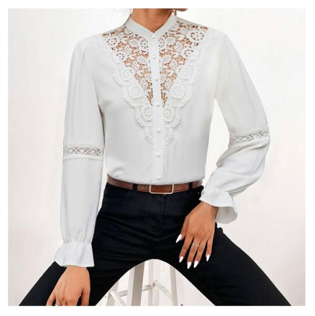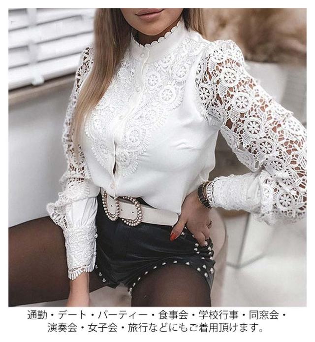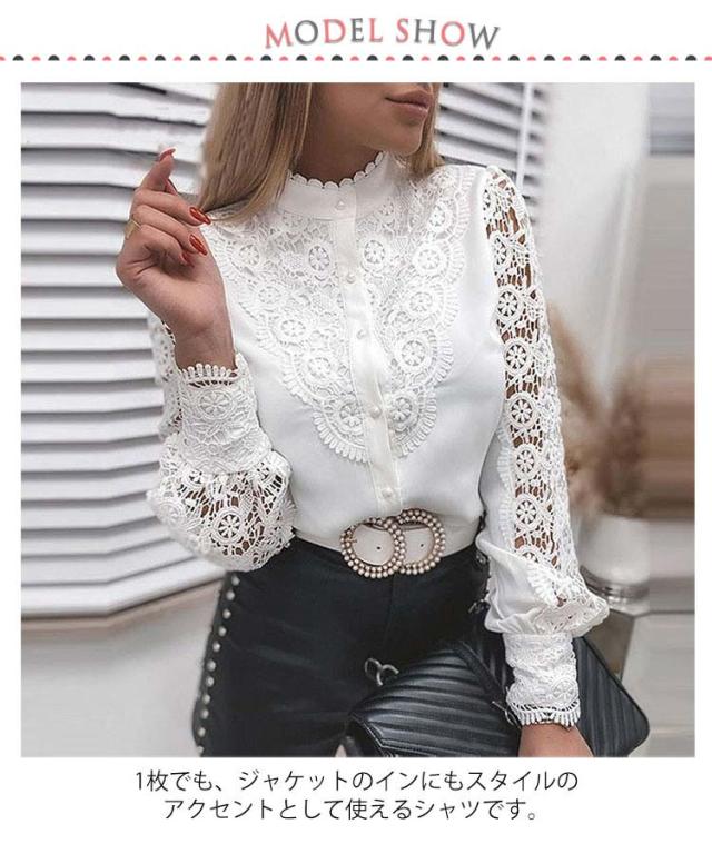 レディース トップス 女性 ゆったり 白 ブラウス シャツ 長袖 レースブラウス レースブラウス 大人可愛い 通勤 総レース おしゃれ かわいい 透け感 花柄 刺繍 春 インナー お洒落 フォーマル きれいめ デート お出かけ 結婚式 入園式