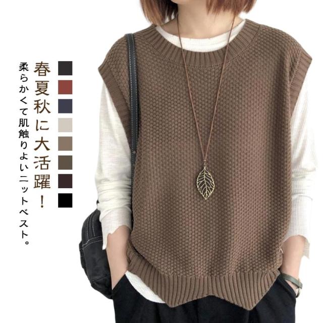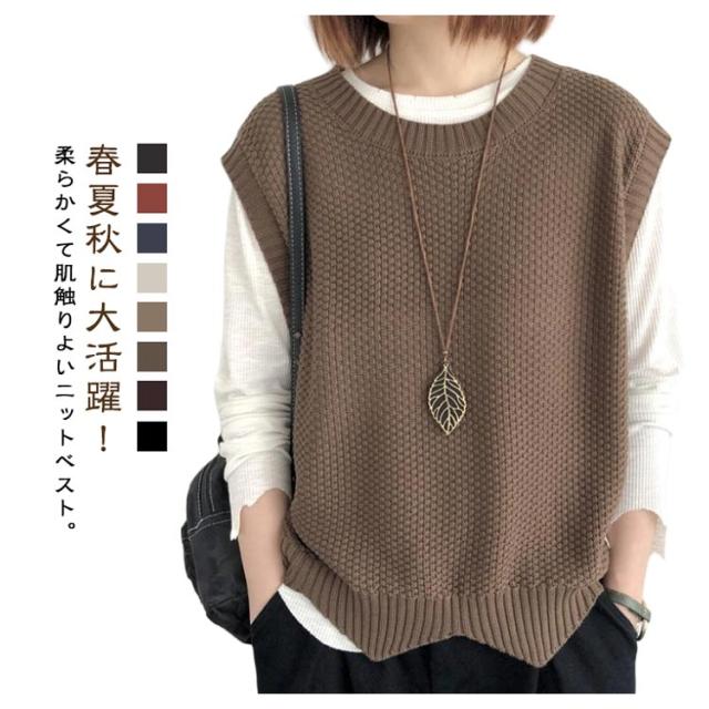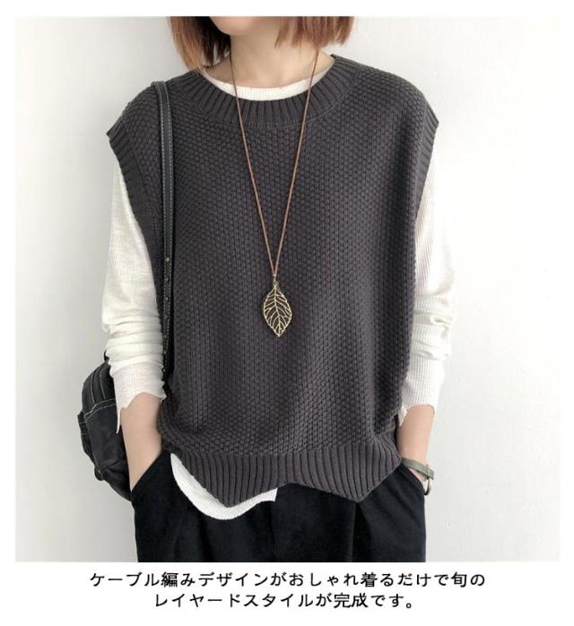 | 春夏秋に大活躍!柔らかくて肌触りよいニットベスト。 ゆったりしたシルエットで、合わせやすい少し長めの丈感がポイントです。 通気性に優れた薄手生地で夏でもリラックスな着心地。 ケーブル編みデザインがおしゃれ着るだけで旬のレイヤードスタイルが完成です。 ロンTや半袖Tシャツのいつものコーデに合わせるだけで一気にこなれ感がアップ! | |
