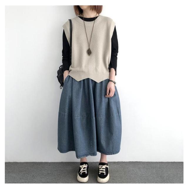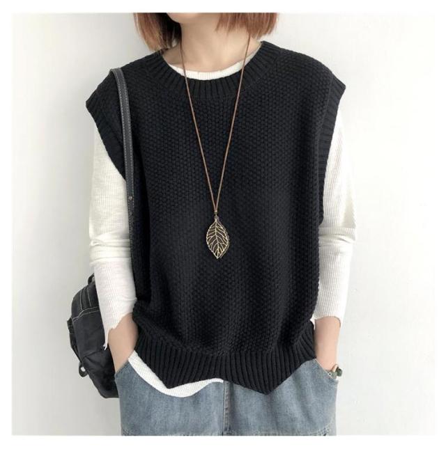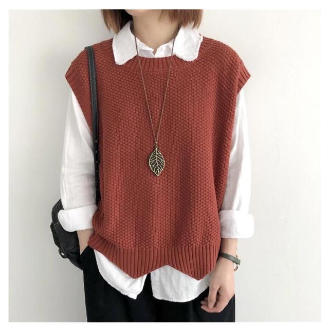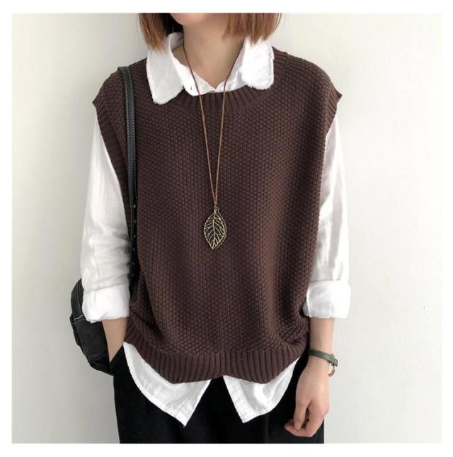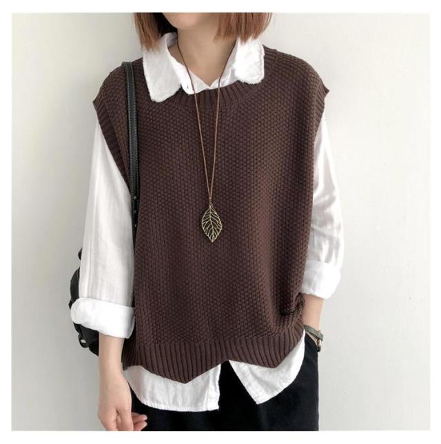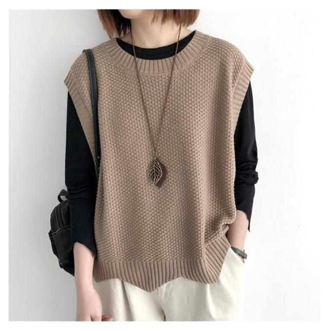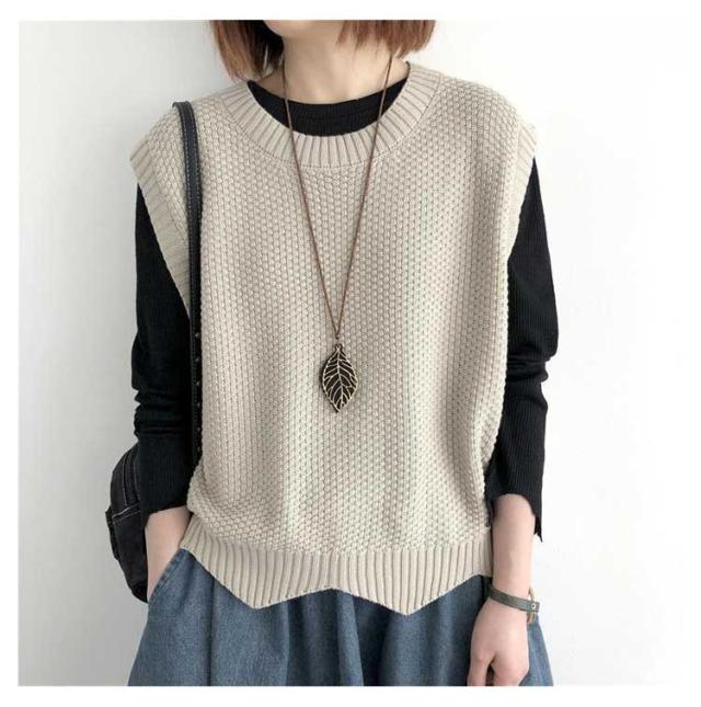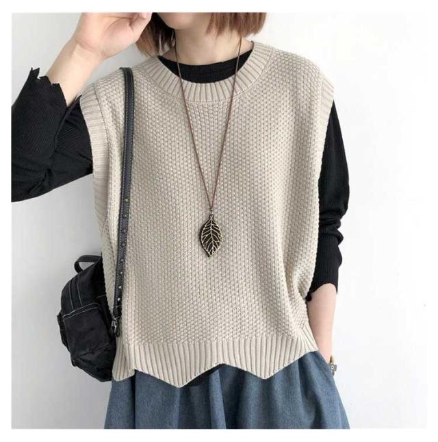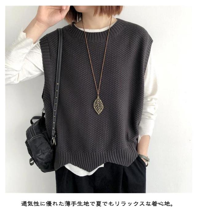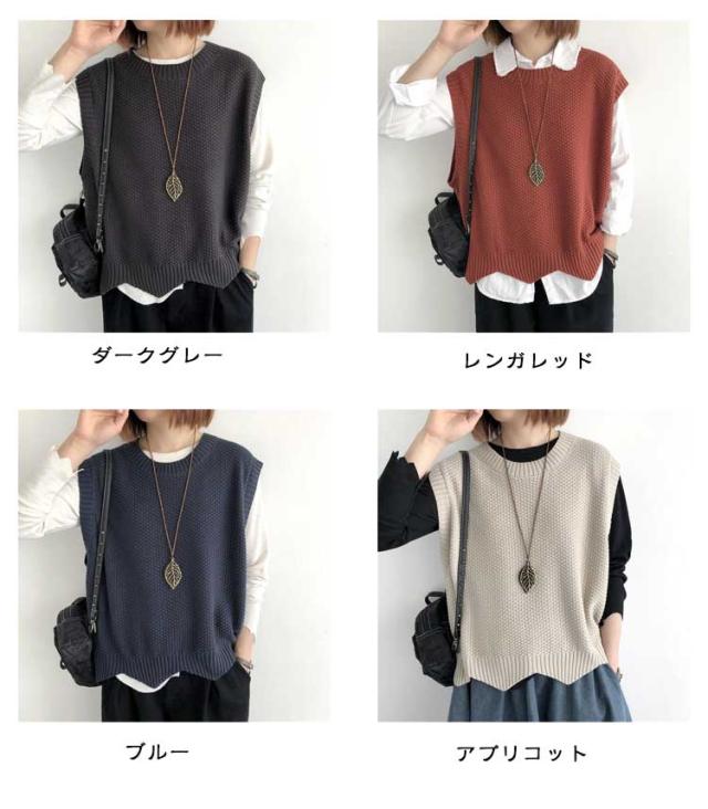 裾スカラップ ニットベスト レディース トップス プルオーバー ベスト 春 秋 サマー カジュアル 着?せ 無地 レトロ 編み風 重ね着風 ニットセーター おしゃれ きれいめ ノースリーブ シンプル 20代 30代 40代