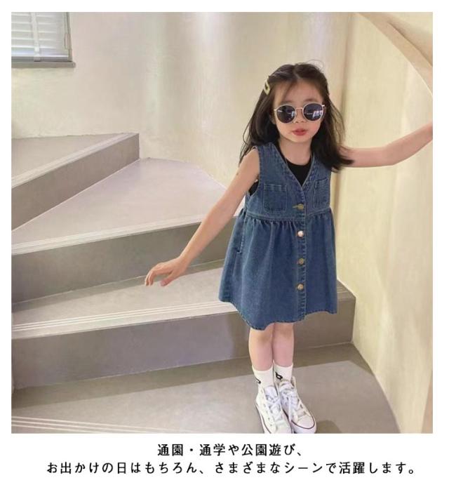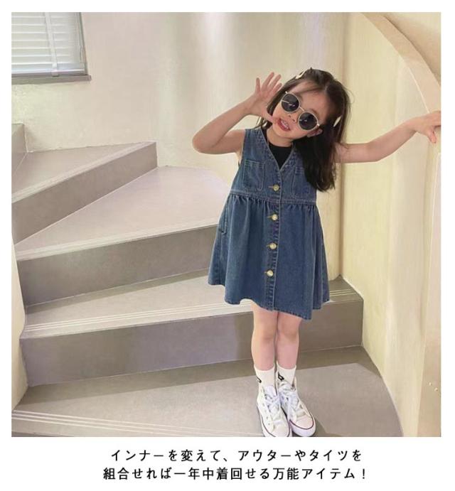 キッズ オールインワン 秋 ジャンスカ 子供服 デニム デニム スカート サロペット ベビー ノースリーブ 女の子 女の子 ワンピース 春 無地 オーバーオール ジャンパースカート 可愛い 子供 レイヤード かわいい おしゃれ