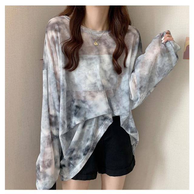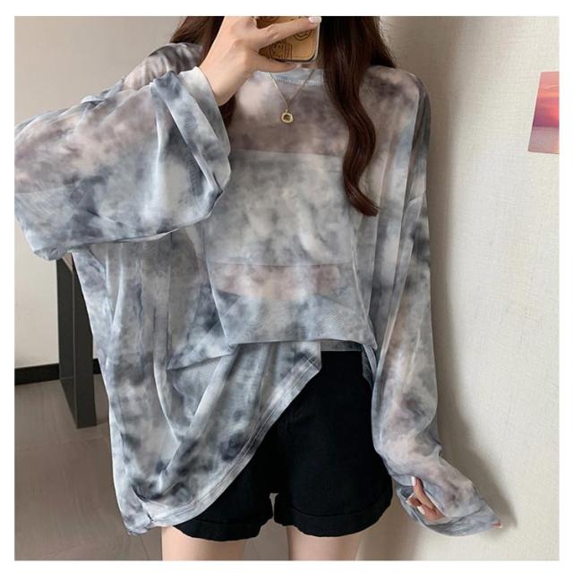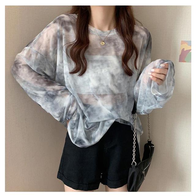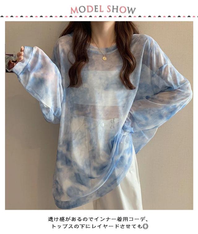 | 【タイダイ柄のシアーメッシュトップス】 カラフルなシアーメッシュトップスを合わせるだけで、いつものコーデがポップに。 透け感があるのでインナー着用コーデ、トップスの下にレイヤードさせても◎ | |