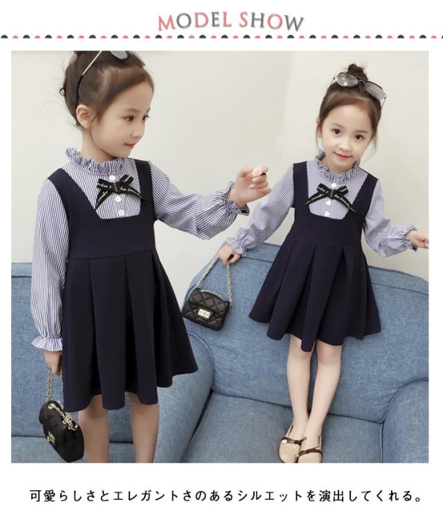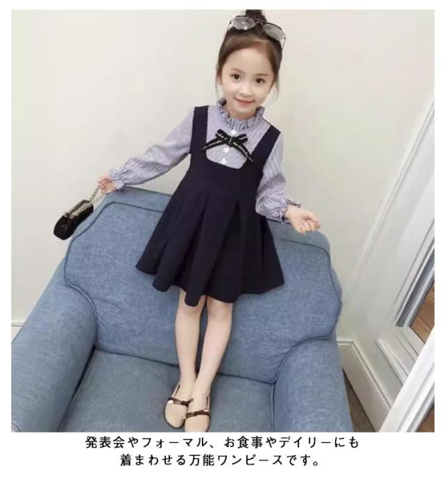 秋 ワンピース ガールズ セレモニードレス 入園式 子供 卒園式 ワンピース ワンピース 春 七五三 子供ドレス きれいめ レイヤード風 女の子 入学式 重ね風 キッズ フレアワンピース 子供 90 100 110 120 130cm