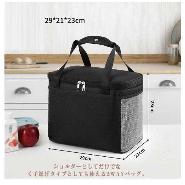 | 2サイズ!おしゃれな保冷保温バッグが登場 抜群の保冷力! 丈夫で漏れにくい! 丸洗いできて清潔! ショルダーとしてだけでなく手提げタイプとしても使える2WAYバッグ。 しっかりとした厚みがあるため、汁漏れの心配も少なく安心です。 内側がアルミなので、しっかり冷気、暖気を遮断。冷たい物は冷たく、温かい物は温かく保ちます。 スクエア型だから、中身もきっちり入れられる大容量が魅力! 万が一汁や飲み物が漏れて汚れても、丸洗いOK。 お弁当箱とドリンク・デザートなどを入れるにはもちろん、少人数でのお花見やピクニックにも便利です。 | |