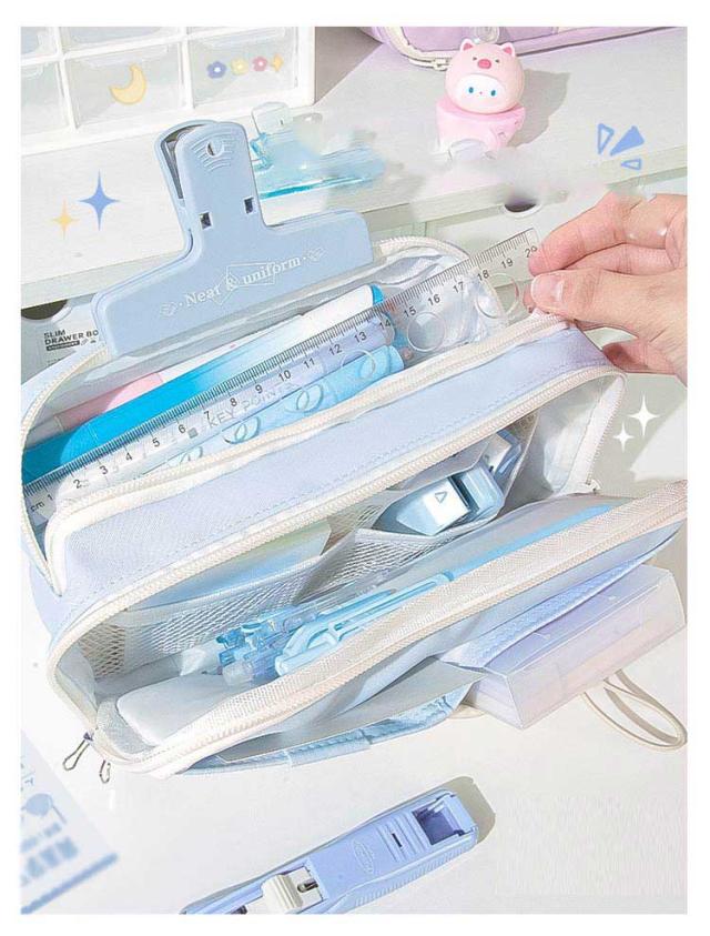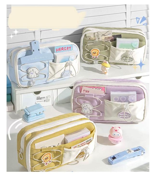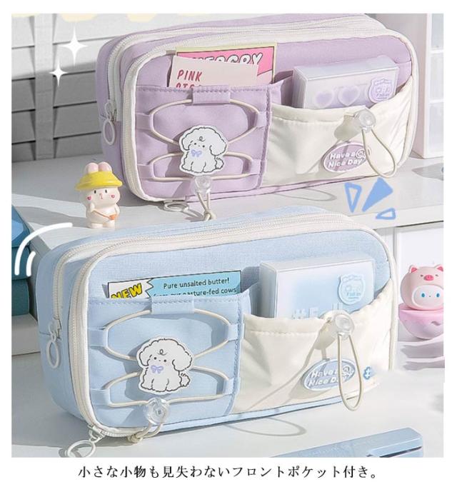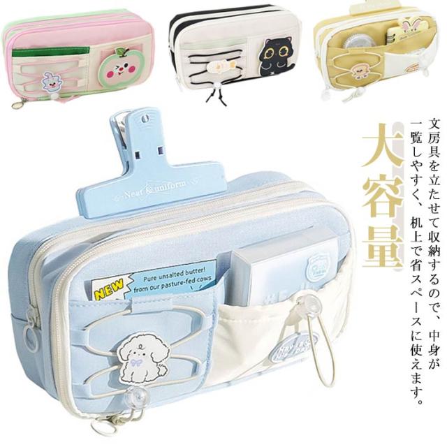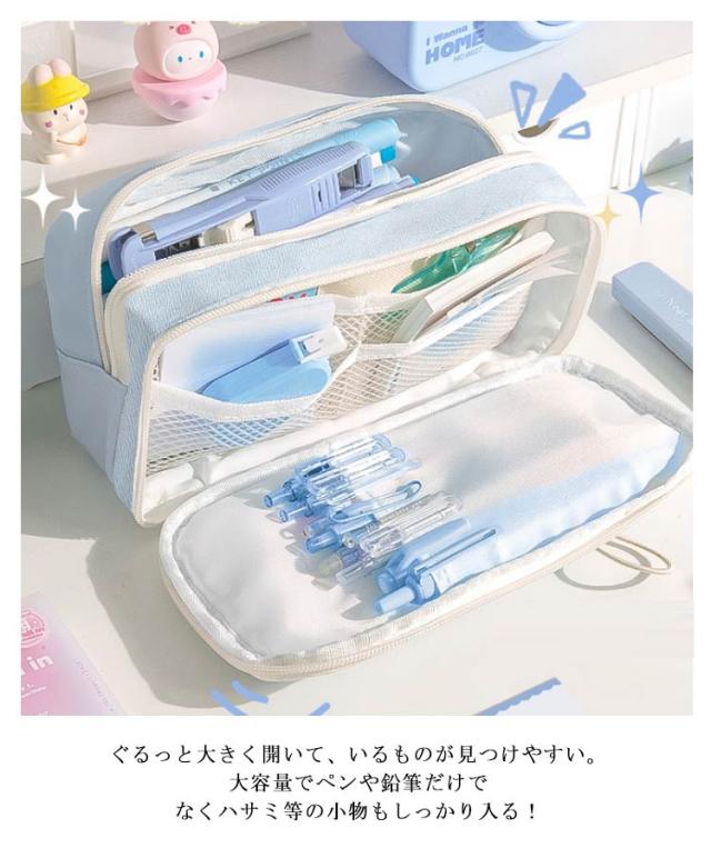 | 文房具を立たせて収納するので、中身が一覧しやすく、机上で省スペースに使えます。 ぐるっと大きく開いて、いるものが見つけやすい。 大人になってからも使えるシンプルなデザイン! 大容量でペンや鉛筆だけでなくハサミ等の小物もしっかり入る! 小さな小物も見失わないフロントポケット付き。 | |