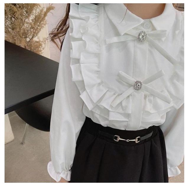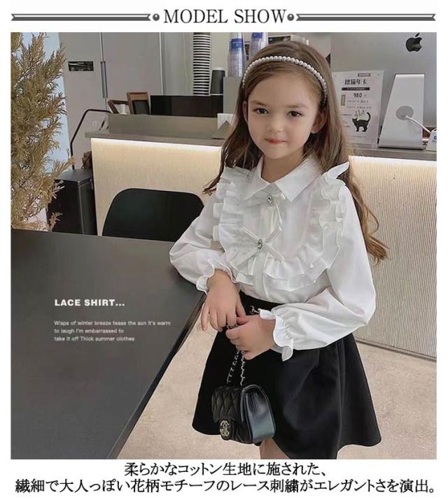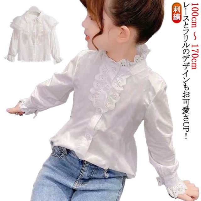 トップス 発表会 シャツ ドレス用スーツ 長袖 女の子 立ち襟 ブラウス レース 春秋着 白 刺繍 フォーマルシャツ シャツ 花柄 キッズ シャツブラウス Tシャツ 卒園式 卒業式 入学式 フォーマルシャツ 結婚式 フォーマル 七五三 行事 110 120 130 140 150 160