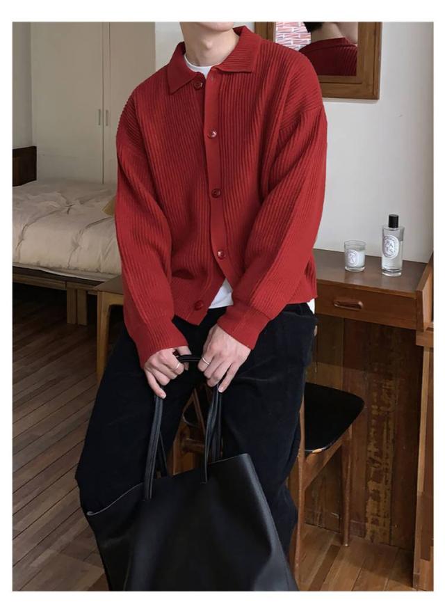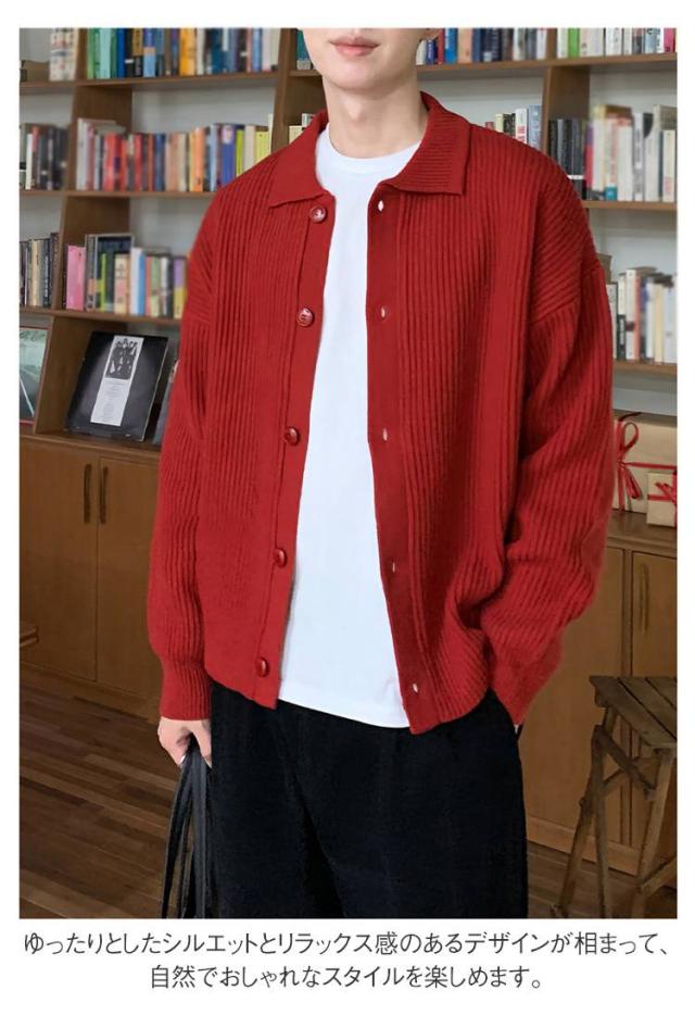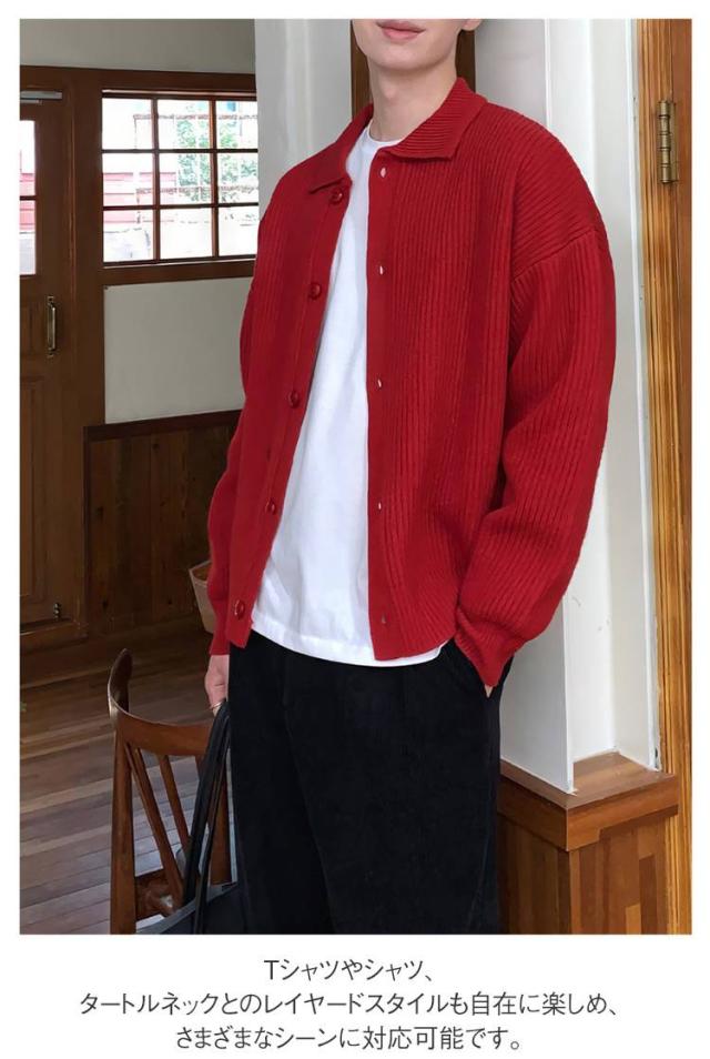 無地 ニットカーディガン セーター カーディガン ニット 秋 メンズ 襟付き 厚手 羽織り 春 前開 冬 20代 30代